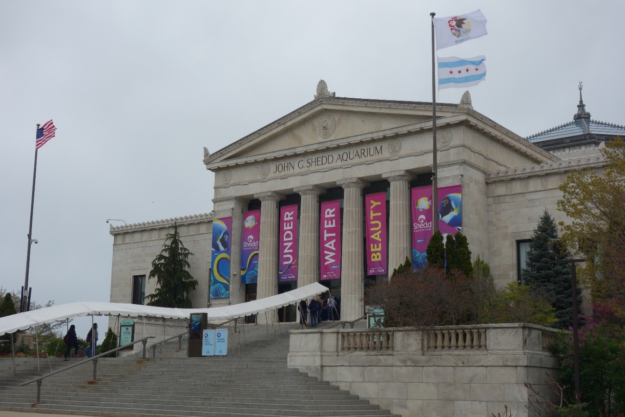 シカゴを代表する公園ミレニアムパークの南側に位置する大きな水族館です。この日は休日という事もあって、季節外れの寒い天気にもかかわらず多くの家族連れでにぎわっていました。先ず建物が素晴らしく、展示も工夫されていて楽しく見学できました。