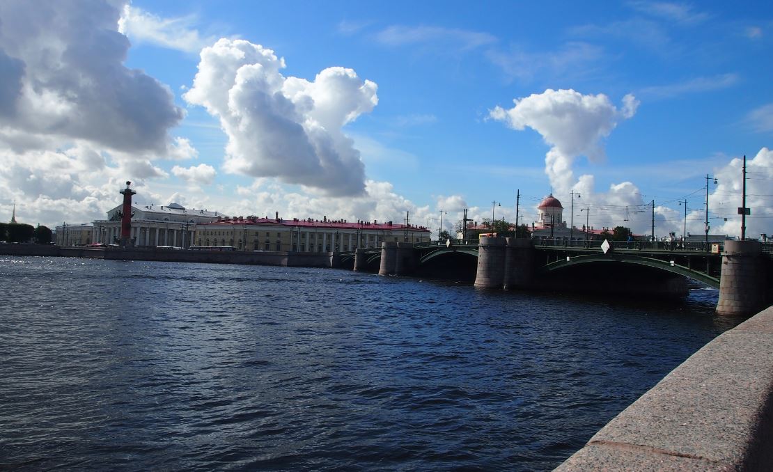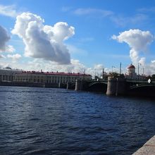 サンクトぺテルブルク旧市街の広い公園夏の庭園から対岸のペトロパブロフスク要塞に向かうネヴァ川に架かる跳ね上げ式の橋です。ネヴァ川の比較的川幅が広いエリアを架かっているので他の橋に比べても立派です。交通量も多かったです。この橋の地下付近を地下鉄2号線が通っています。