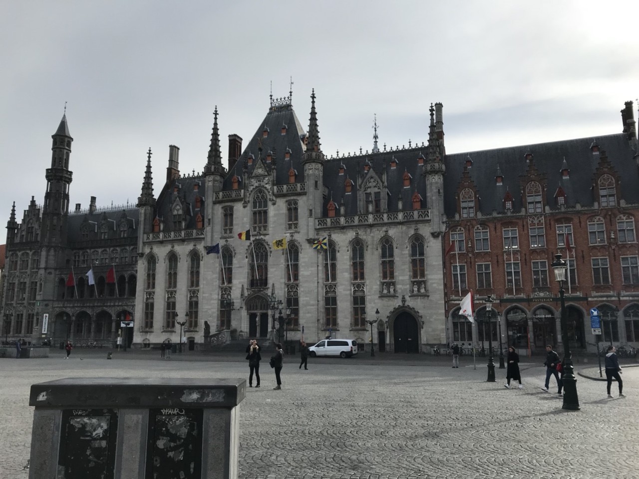 正面の壁には、沢山の彫像が飾られていました。ブルージュの歴史を感じます。右は礼拝堂で、左は博物館となっています。とても市庁舎とは思えないほど、豪華な光景です。