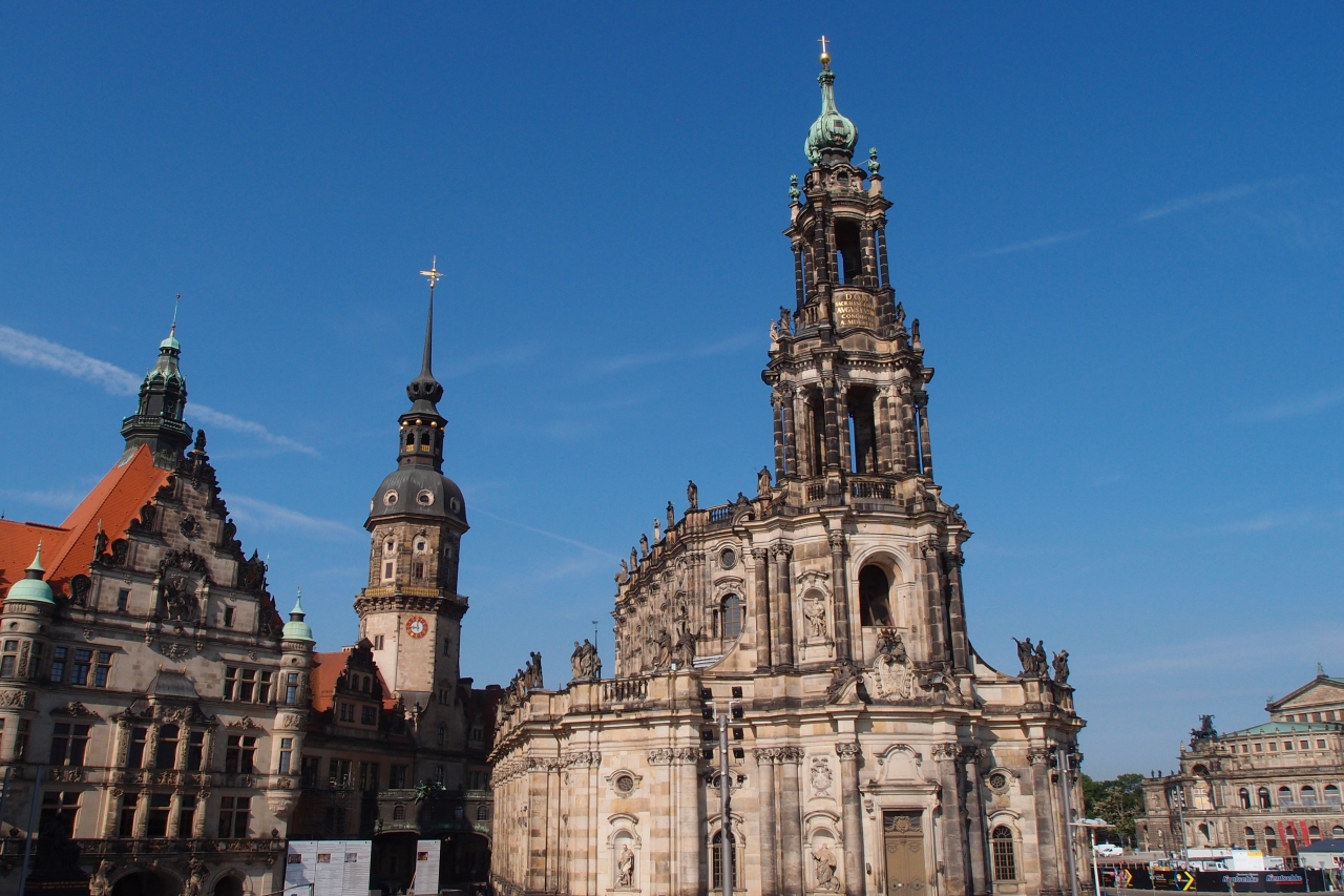 三位一体大聖堂、レジデンツ宮殿に続き、旧王宮芸術アカデミー、フラウエン教会などが美しく見えます。エルベ川をはさんでノイシュタットもよく見えます。
