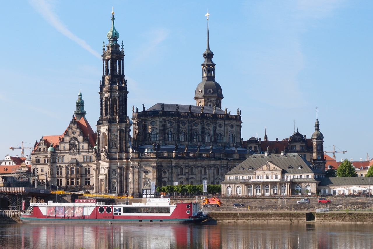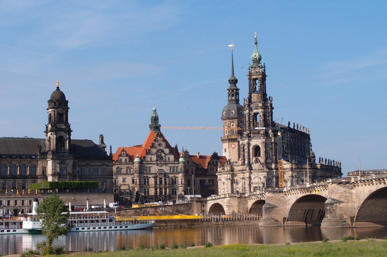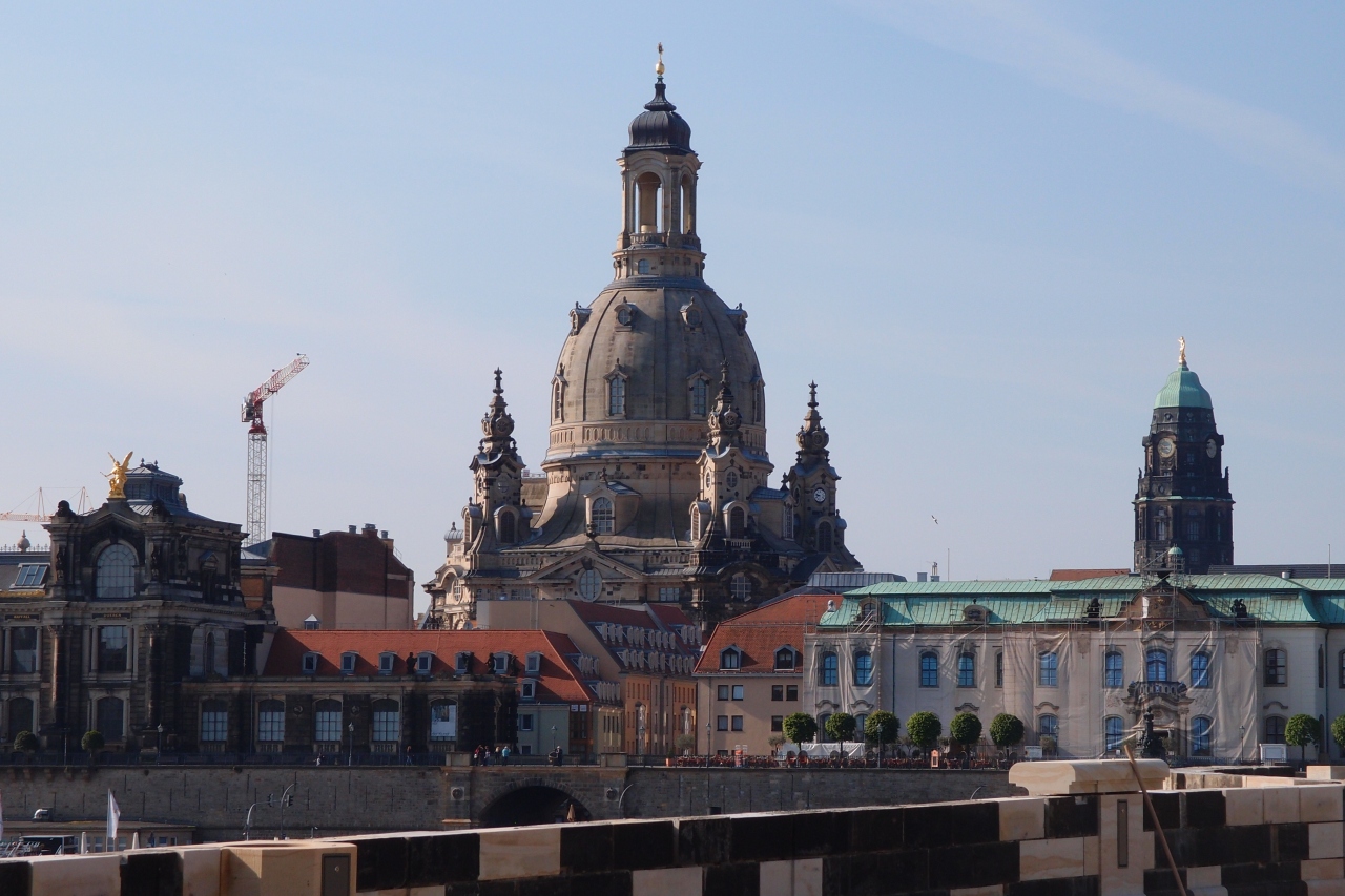 ドレスデン旧市街とノイシュタットを結ぶエルベ川の石橋です。工事中ですが歩行者と自転車は渡ることができました。