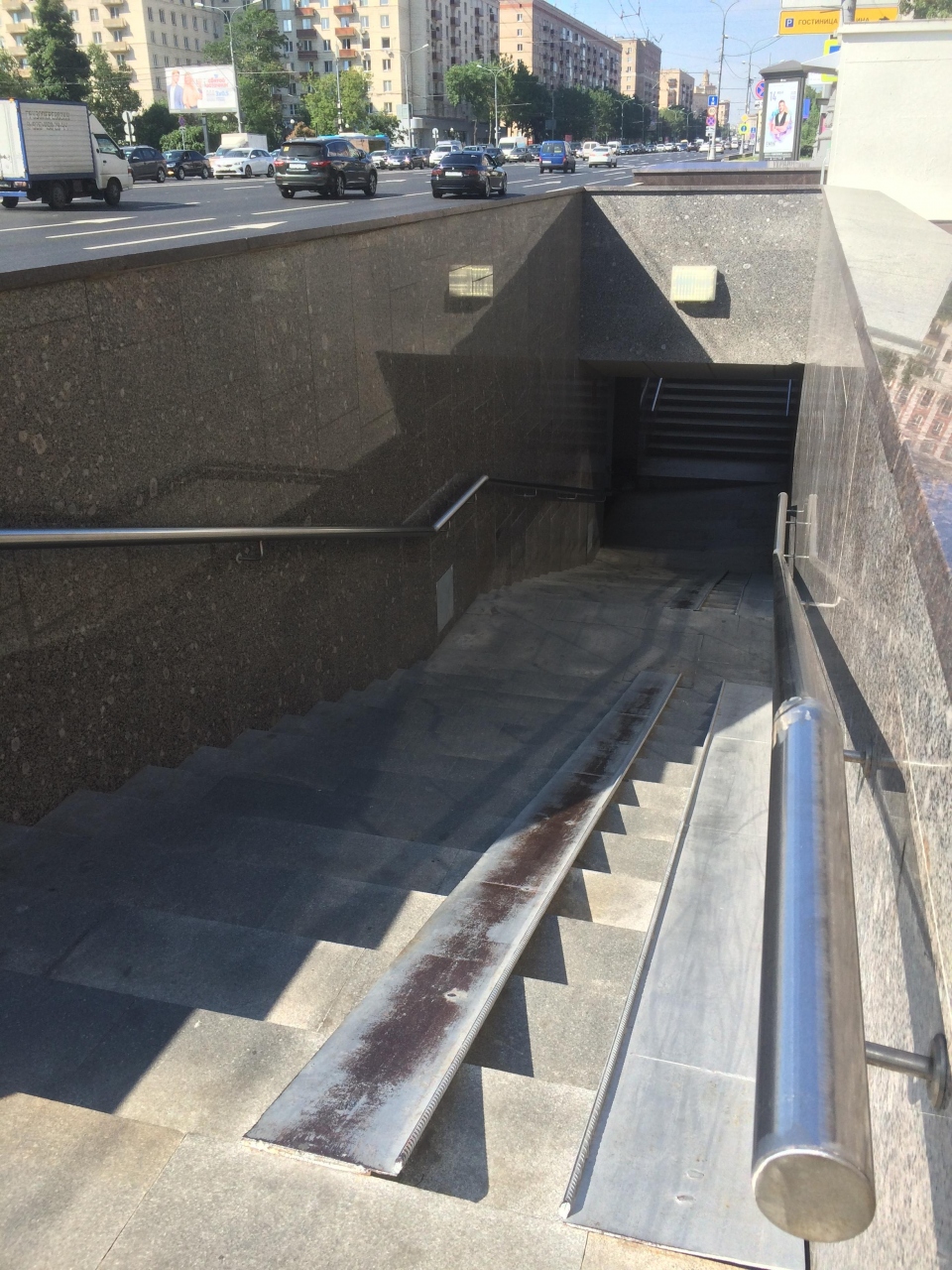 最初はちょっと戸惑いましたが他の場所でも同様に男性の方々が上へ下へ運んでくださり、中には地上階まで運んだ後にまたメトロの方へ降りていかれた男性もいました。