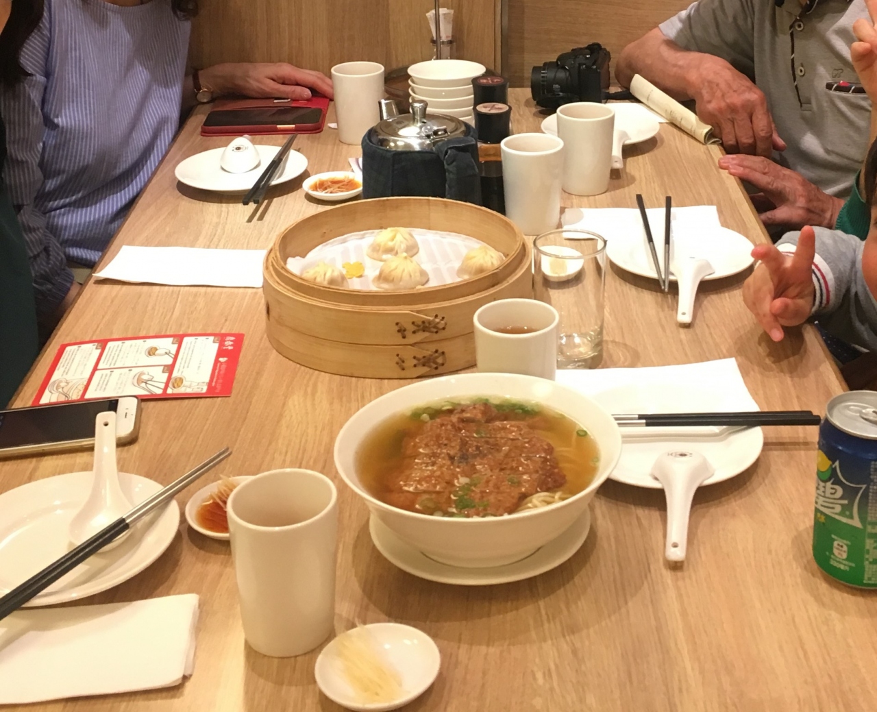 2回目の訪問です。前回同様、店の前には人だかり。5月の平日昼時です。前回は3時間待ちだったのですが、今回は60分待ち。またほかの店で軽く食べてから戻ってきました。10歳の子供は大人扱いで人数分注文するように言われ、小籠包はハーフサイズを注文し、品数を増やしました。前もそうでしたが、小籠包がアツアツではない。ハフハフしながら食べたいのに、ぬるい。。。今回初挑戦の「きくらげのデザート」をいただきました。これは、もうちょっと甘くした方が美味しいかも。個人的味覚の感想です。