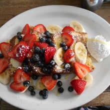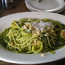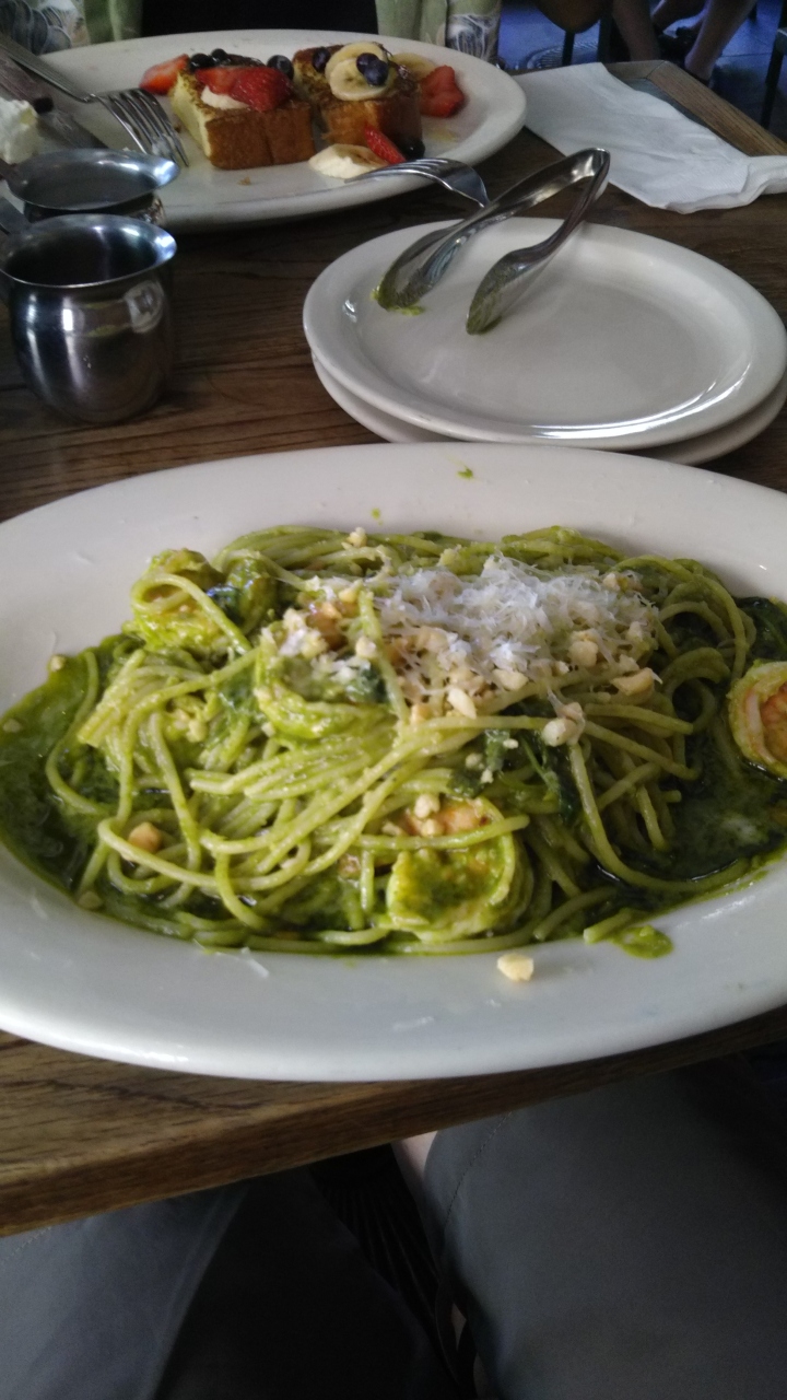 アイスティーとミックスベリーパンケーキ、グリーンスパゲッティを注文しました。