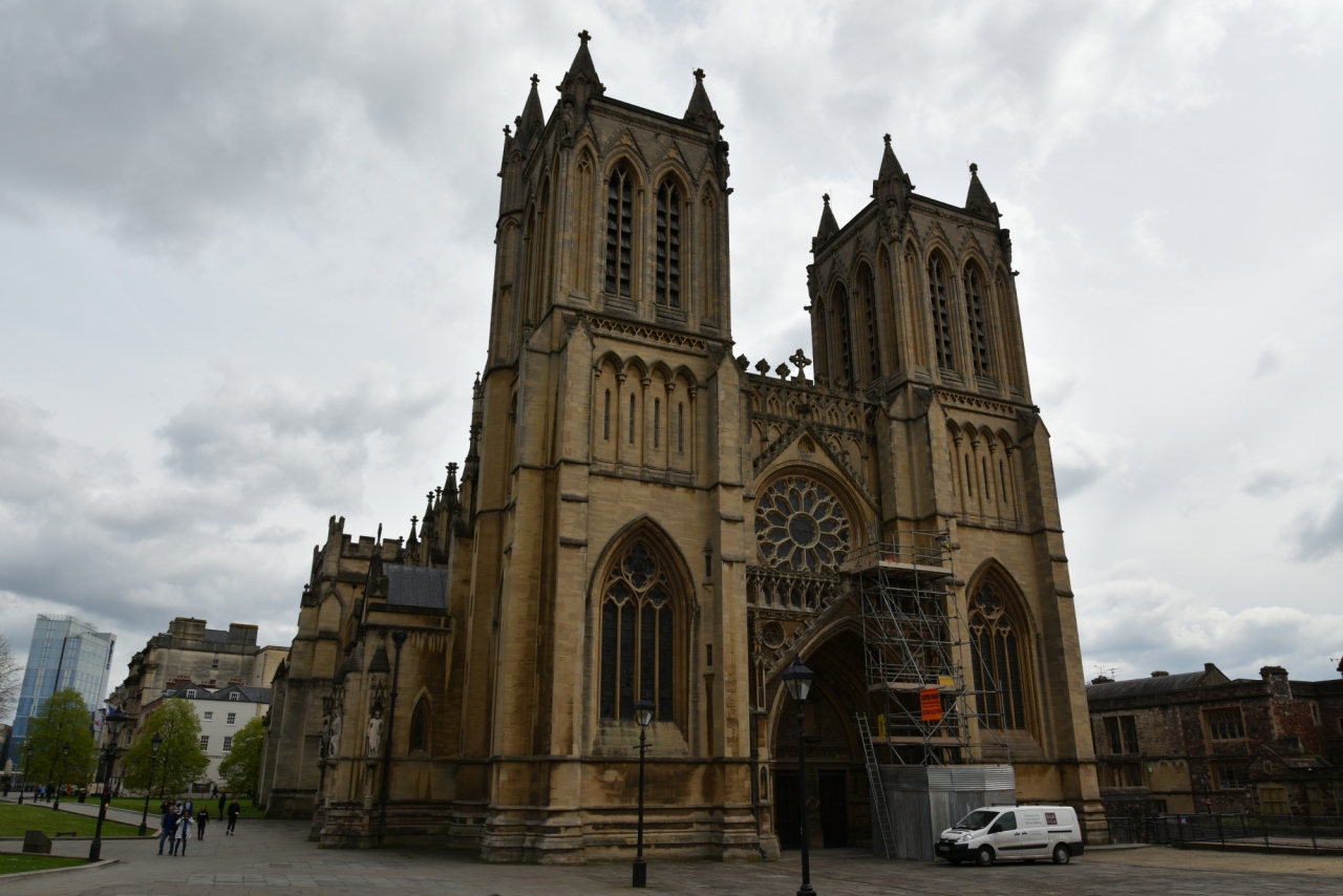 ブリストルの旧市街に相当する地区にある大聖堂。修道院から発展した歴史があり、イギリス国内は回廊がすばらしい大聖堂が多いので期待する人も多いと思うが、回廊は一周全てがすばらしい保存状態とはいかない。