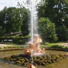ぺテルコフ夏の宮殿の下の公園は短い夏の季節の為に贅を尽くした噴水が点在しています。その中心であるサムスンの左右にあるいフランスの噴水と対になった美しいもう一方の噴水がイタリアの噴水です。やや細めの水流ですがきれいな放物線が印象的です。