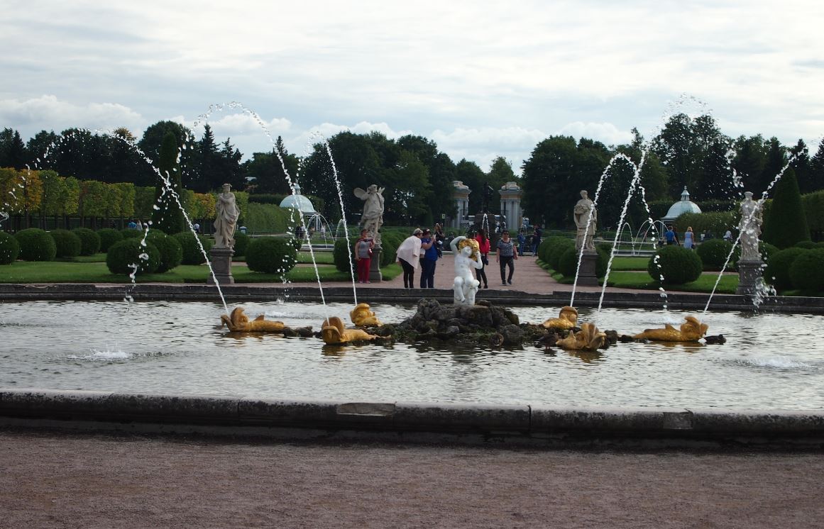 ぺテルコフ夏の宮殿の上の公園にあるとても広い池を備えた噴水が樫の噴水(Fountain of oak)です。下の公園の噴水たちとはうって変わって控えめな水流で派手さはありません。上の公園にはあまり高い木などがないので十分目立ちます。