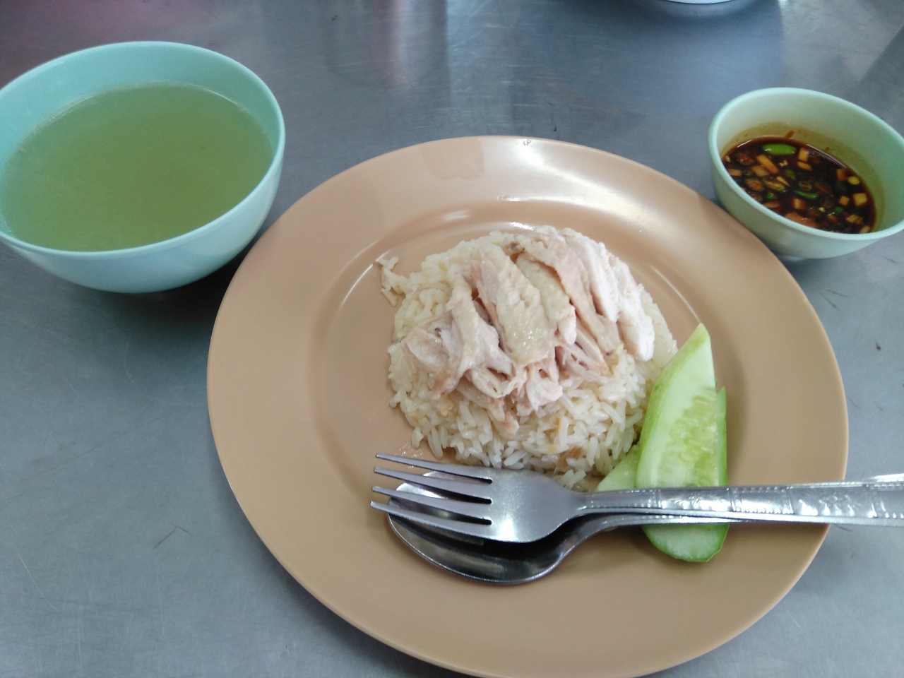 BTSチットロムから徒歩15分で到着!行列に15分ほど並びました。並んでいる途中で近くの姉妹店は空いていると店員に勧められましたがそのまま並ぶことにしました。結構回転が速くすぐに順番が来ました。40バーツのカオマンガイを注文!安くて美味しい一品です!