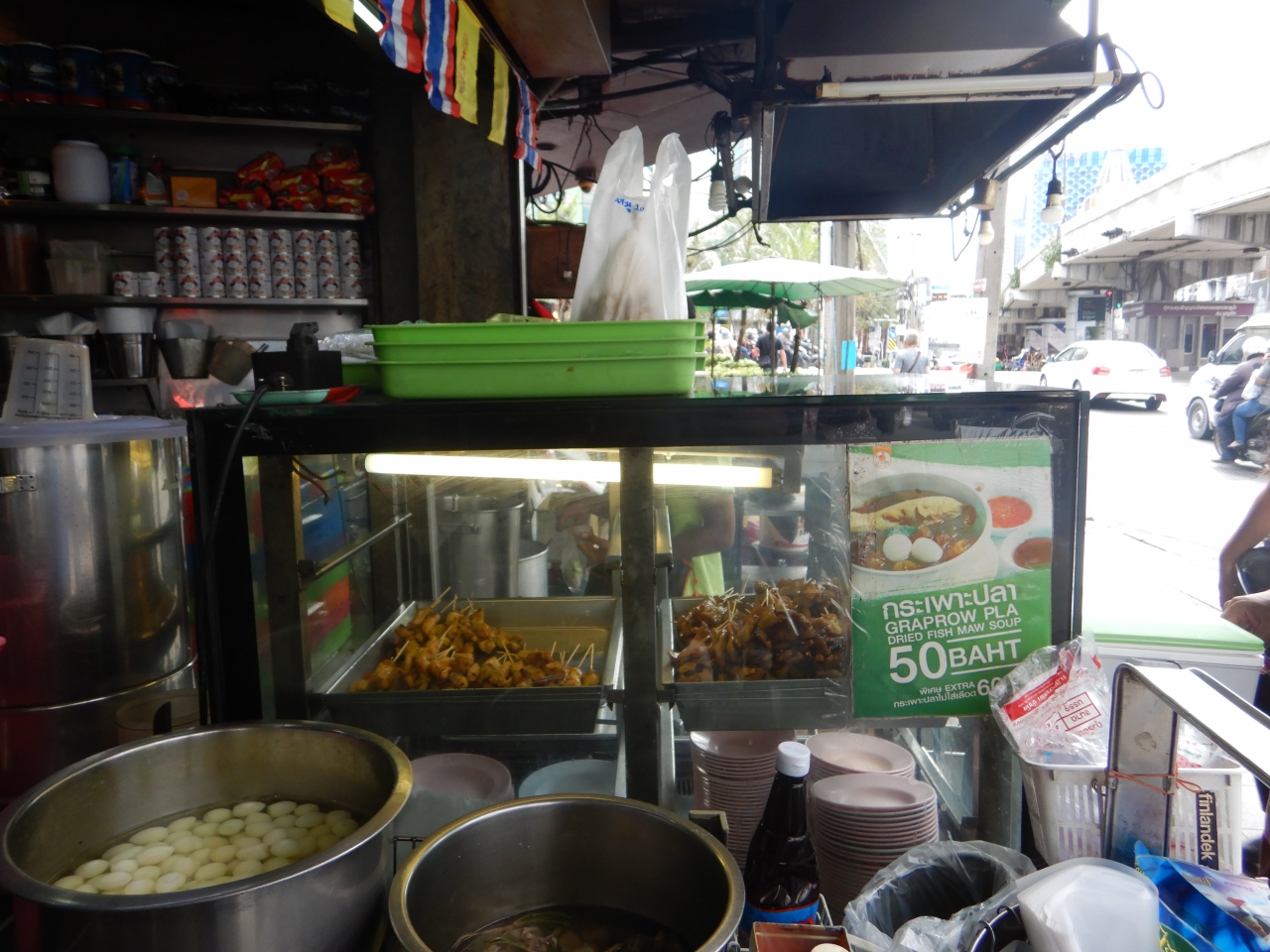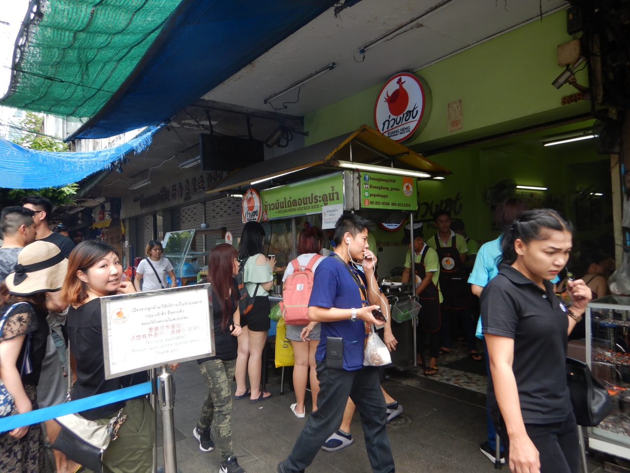 ガイトーンプラツームでカオマンガイを食べたあと、ここで串焼きを10本買って帰った。チキンとポーク5本づつで60バーツ。付け合わせの野菜やピーナッツソースを気に入っているので、プラツーナムに行き、ここでカオマンガイを食べない時は串焼きを買った帰ることがある。