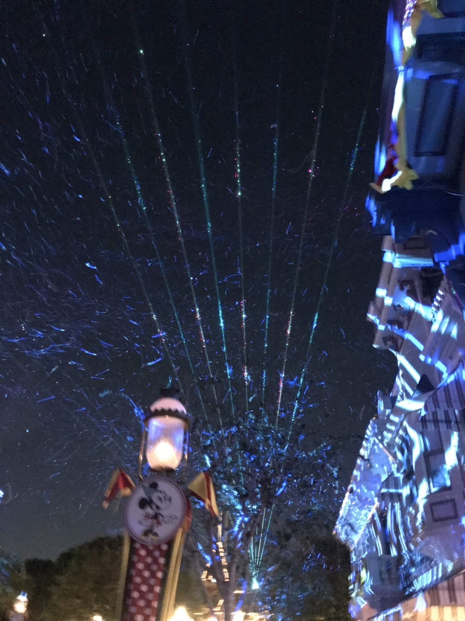 眠れる森の美女のお城やイッツ・ア・スモール・ワールド、メインストリートUSAの建物全体を使ったプロジェクションマッピングと共に楽しむ花火はとても迫力がありました。