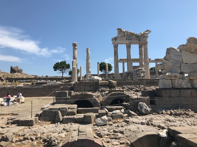 イズミール から電車とバスを乗り継いで世界遺産のベルガマ遺跡へ行きました。アクロポリスはベルガマの小高い丘の上にあって、麓からロープウェイ(往復35リラ)に乗って行きました。トラヤヌス神殿や劇場など結構見どころはありましたが、エフェス 遺跡に比べると小規模でした。