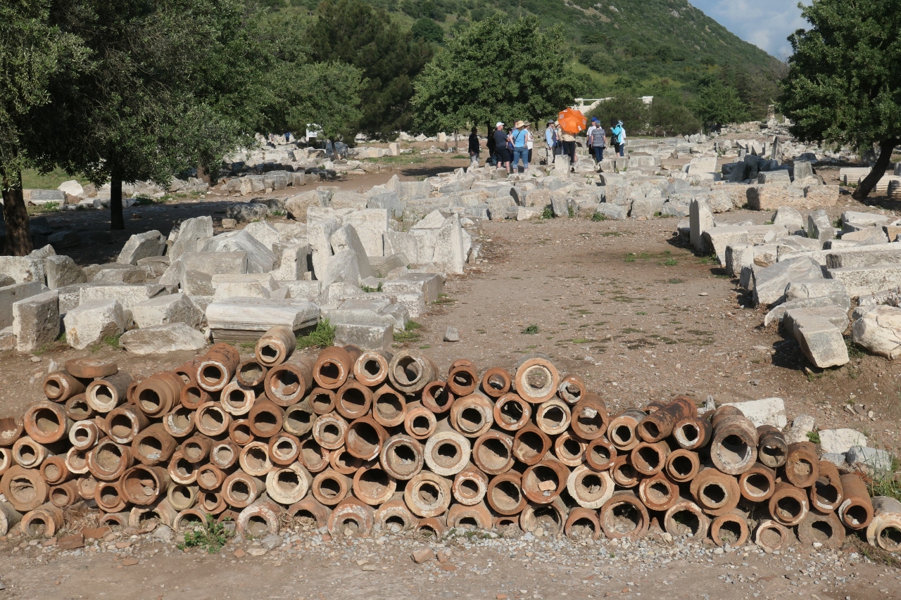エフェソスは上下水道施設が充実していたことでも知られています。公営アゴラ広場に積み上げられていた茶色の粘土パイプは、水路建設で使われていたものと説明されていました。