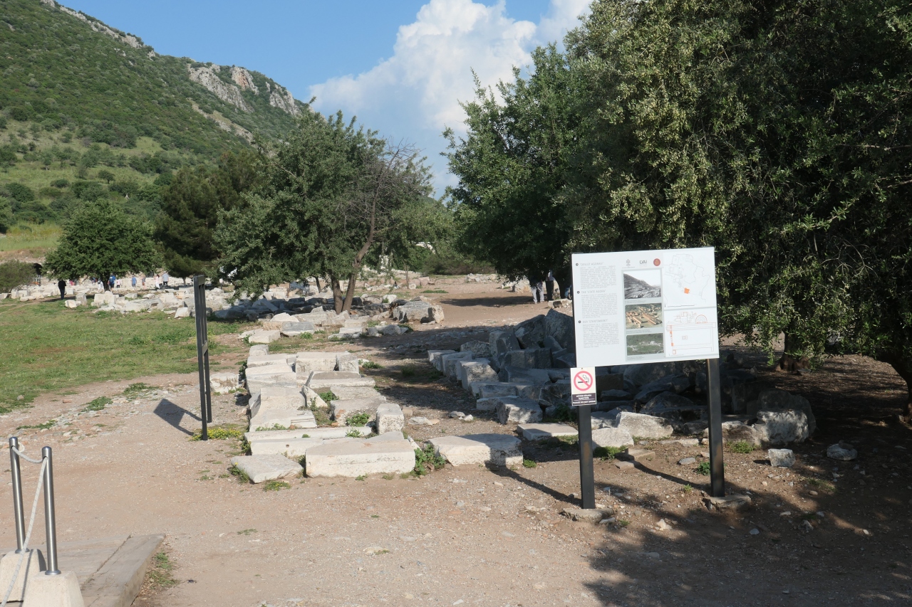 エフェソス遺跡の南ゲートを入ると広場のような場所に沢山の礎石が転がっていました。この場所が「公営アゴラ遺跡(State Agora)」です。エフェソス遺跡に2つのアゴラ、公営アゴラと商業アゴラ(Commercial agora)がありますが、こちらは公営アゴラで町の集会や会議などが行われたところです。アウグストス帝の時代に壊れ、そのまま放置されていたそうです。