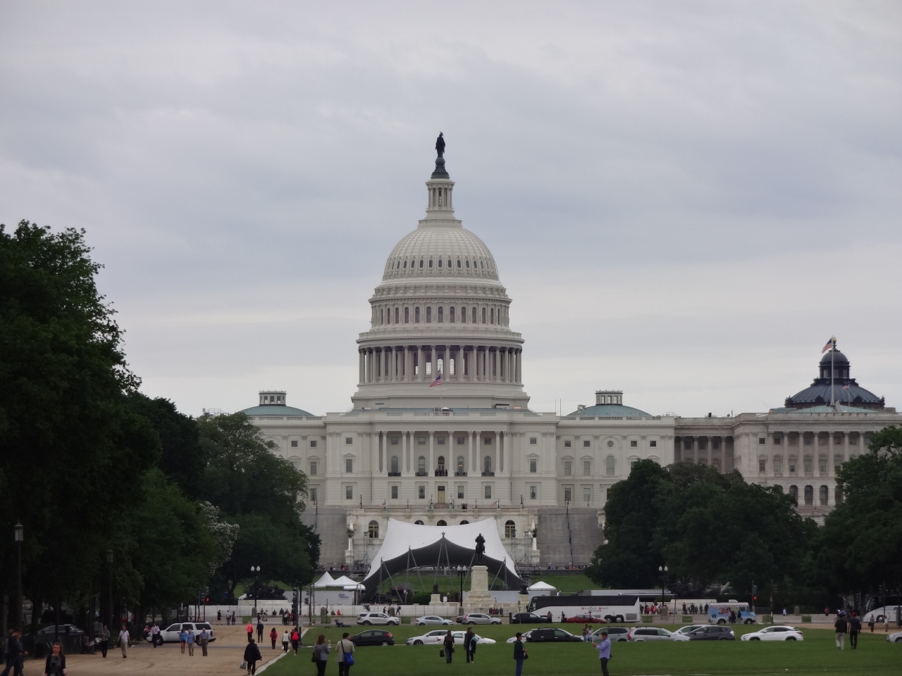 ナショナル・モールの東、ユニオン・ステーションの南の場所にあるアメリカ合衆国議会の議事堂で、建物の北翼が上院、南翼が下院の議場。白亜のドーム頂上には自由の女神のブロンズ像がある。連邦議会議事堂のドーム部分などの改築工事が行われていたが、2017年1月に改築が完了しているはずなので、連邦議会議事堂ビジターセンターのページから、見学ツアーを申込もうとしたが、滞在期間中はNot Availableだった。ドーム天井の「Apotheosis of George Washington」(ワシントンの賛歌)というフレスコ画や、ロタンダの中に掲げられた、アメリカの歴史上 重要な出来事を描いた8枚の油絵はぜひ見たかった。