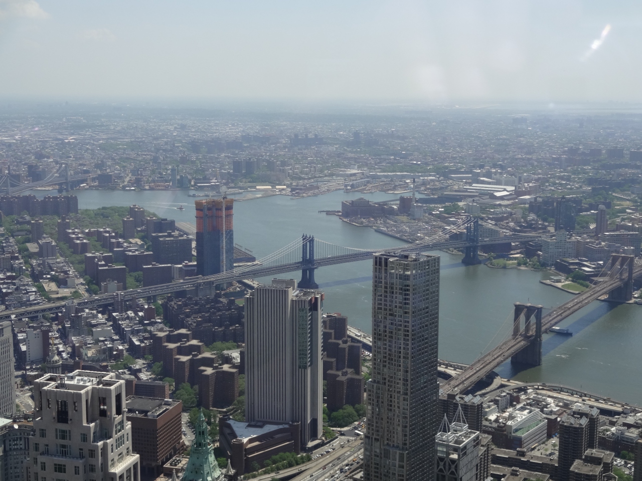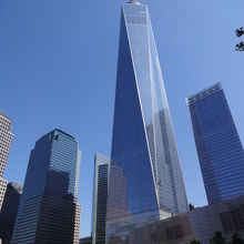 2015年5月にオープン、アメリカ独立の1776年にちなんで541m(1776フィート)の高さで建設されたそうで、NYで一番大きな建物となっており、真下から見るとかなり大きい。展望台に登る際のエレベーターのタイムラプスをTVですごいと思ったが、実際には大したことが無かったのは残念。