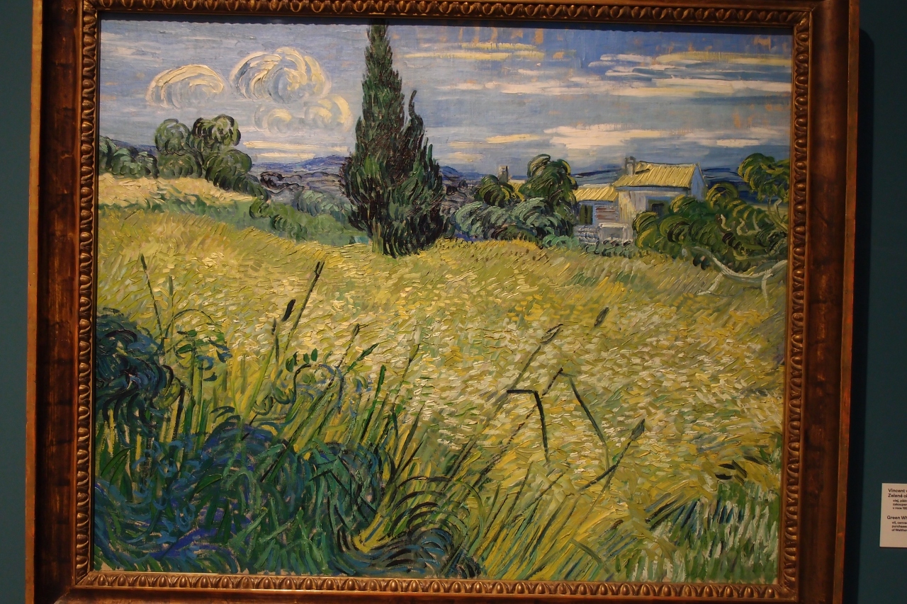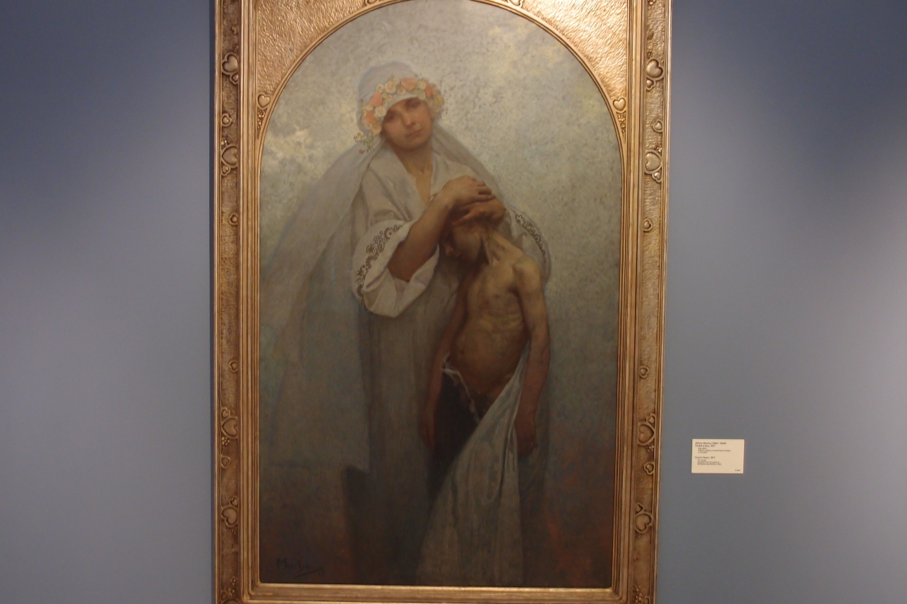 宮殿といっても普通のビルで、1階のチケット売り場はがらんとしたところにあり、エレベーターで各フロアーの展示室に行きます。展示作品数はとても多く、ミュシャの油絵やフランス絵画などもありました。