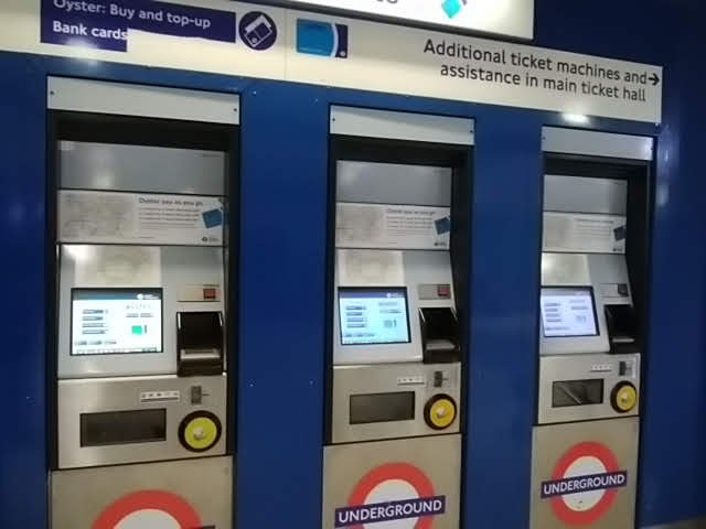 通路側にあったオイスターカードの券売機(写真)はクレジットカードを入れても反応しませんでしたが、改札のそばの券売機は大丈夫でした。係員も近くにいるので、改札のそばで買った方が安心かもしれません。