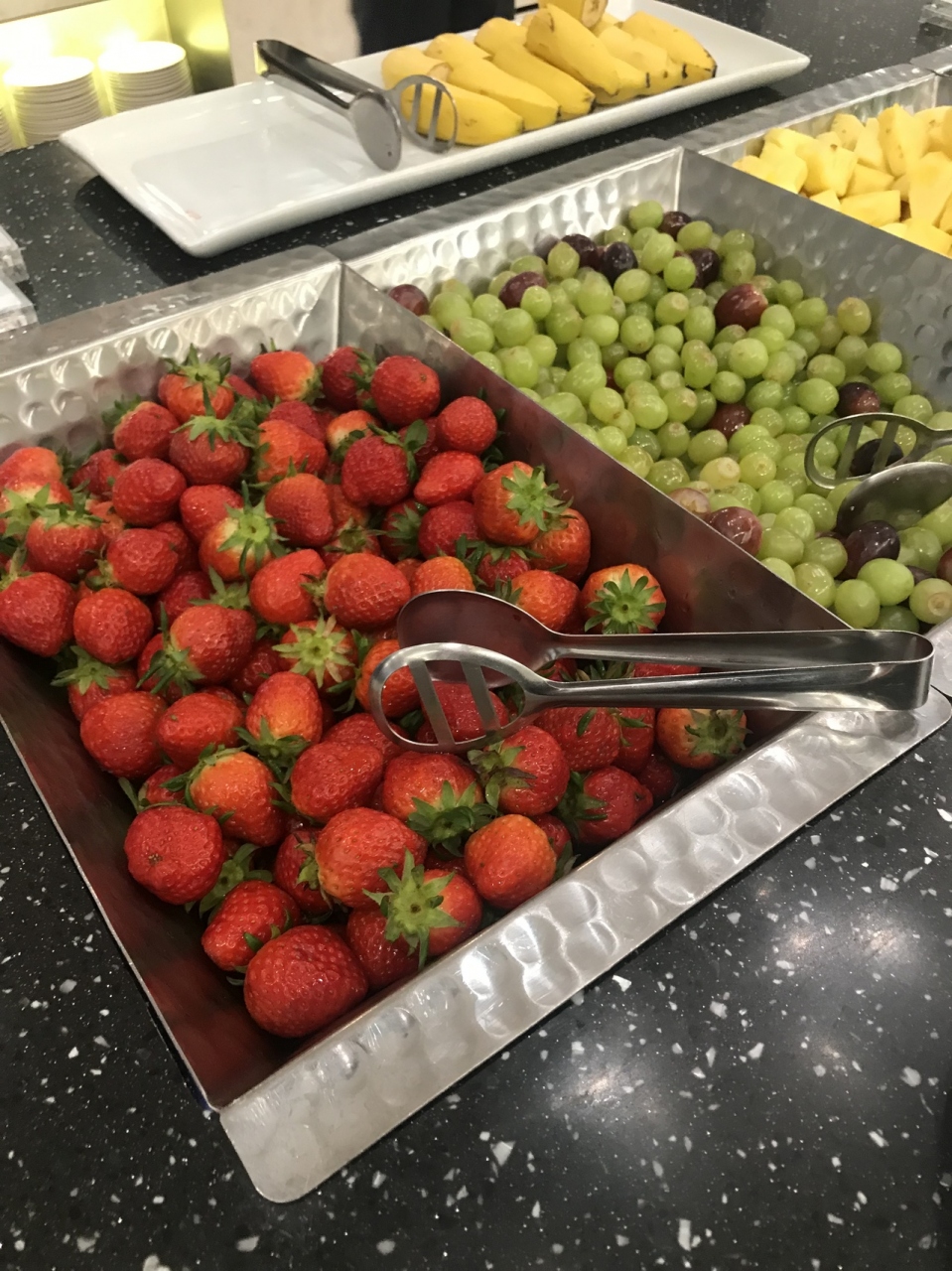 空港でラウンジ巡りするのが好きだけど、なかなか第二ターミナルを使う機会がないので、楽しみにしてラウンジに行きました。食べ物の種類が豊富だし、季節のおかげか、いちご発見!!いちごいっぱい食べれて幸せすぎました。