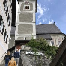 高台にある教会で、四角い塔が目印です。墓地と納骨堂(バインハウス)があり、歴史のある教会であることが伺い知れました。教会内への入口はちょっとわかりづらく、お墓側にある入口からは入れず、階段がある方から入れました。高台にあるので、教会前から湖を見渡すと眺めが良かったです。