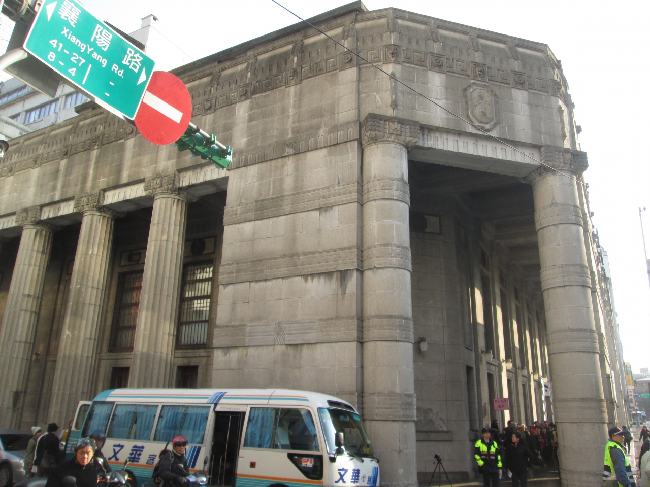 台北駅の南西側に位置する博愛地区には、総統府をはじめとする台湾中央政府の官庁が集中していました。台湾銀行は博物館前の襄陽路を挟んでそびえるなんとも重厚な建物でした。正面にある8本の巨大な柱と石で覆われた外壁を見て圧倒されました。エジプトとマヤの文明の建築を彷彿する雰囲気でした。