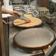 ガイドブックに載っていて美味しそうだったのでネフスキープロスペクトの看板を見つけて入りました。オーダーをすると目の前で焼いてくれて熱々を食べられます。デザートタイプもありますがサーモンが入ったおかず的な物もあります。ロシアのクレープはとても腹も持ちが良くてれっきとした食事にもなりますね。