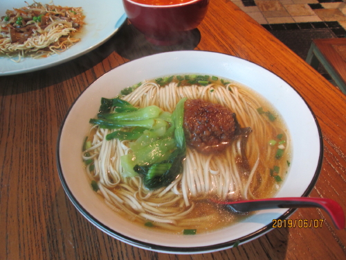 清代1909年創業の老舗「喬家柵」、安くて美味しいと評判の大衆食堂。准海中路から離れたフランス租界の住宅地にあります。地下鉄1、10、12号線「陝西南路」駅から襄陽南路を南へ歩いて10分、永嘉路の交差点に建ってます。今年2019年に改装いたしました。朝は10時30分からと早朝はやっていません。1階は麺、2階は料理に分かれています。1階の昼時は混雑していて店の外で順番待ちしています。席が空くと店内へ呼ばれます。レジで注文し、番号札を貰って席に着きます。番号を呼ばれ料理が運ばれて来ます。肉団子麺は麺が細く、肉団子は大きく、これで16元。安くて美味い評判通りです。