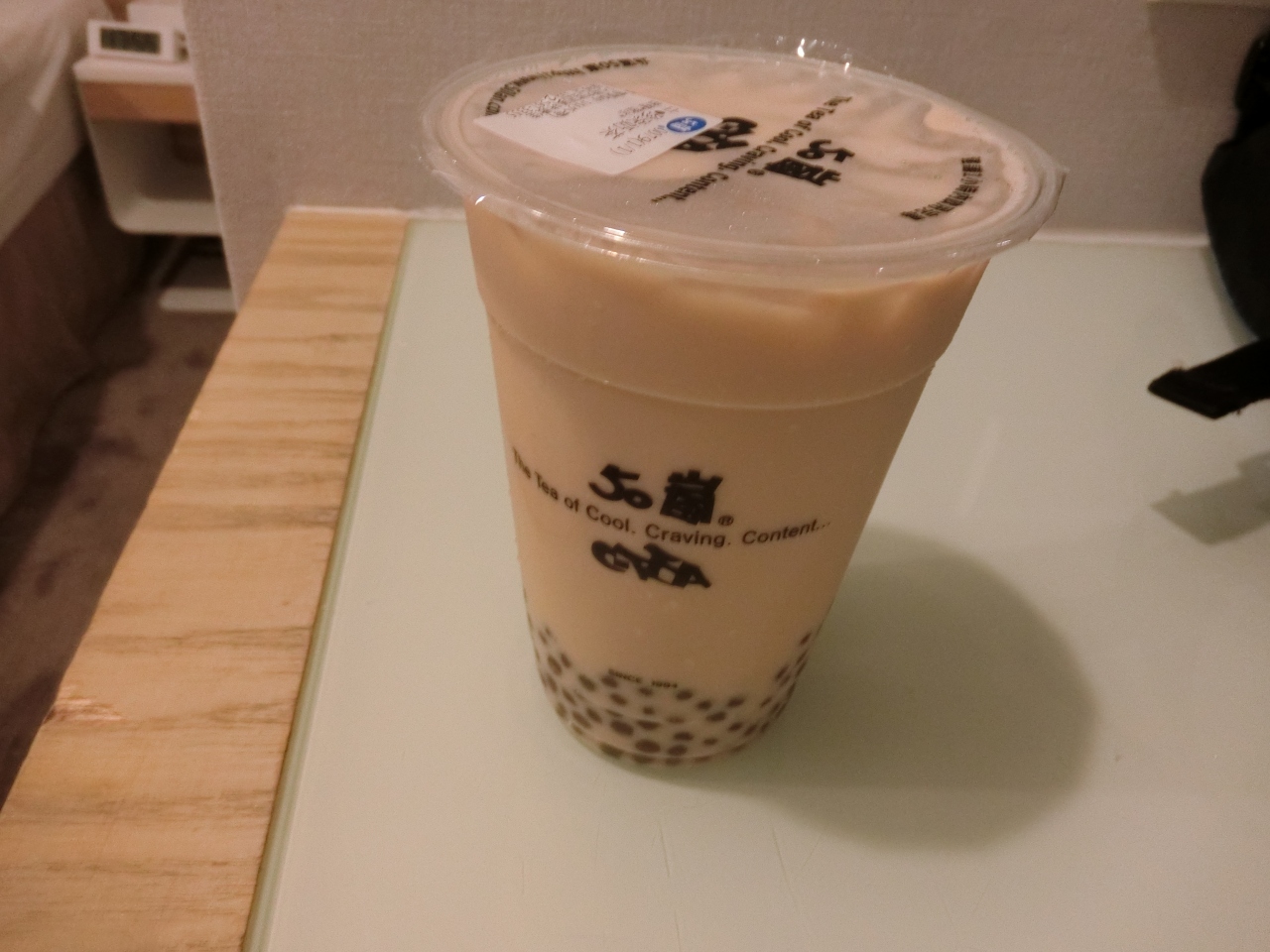 台北では、あちこちにこのお店を見ることができます。台湾に来たなら50嵐でタピオカミルクティを飲もうと思っていました。氷の量や砂糖の量も選べます。どちらも少しにして、テイクアウトしてホテルで飲みました。タピオカももちもちしていて味もおいしかった。
