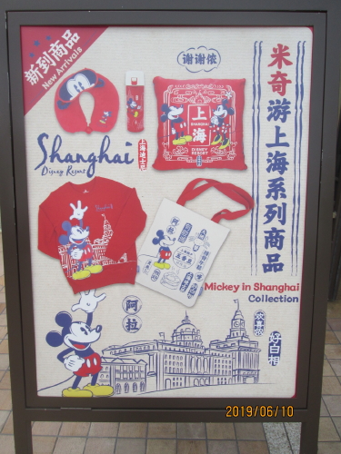 迪士尼楽園の外、入口左の迪士尼小鎮(ディズニータウン)の入り口にある上海のワールドディズニー・迪士尼世界商店です。迪士尼楽園へ入場しなくてもディズニーグッズが限定品も含めて買う事ができます。入場券が必要ないので空港への行き帰りの余った時間、トランジットの空時間に寄る事が出来ます。浦東空港からタクシー20分、110元、バス(上海国際旅遊度暇区快線4号)30分30元、リニア+地下鉄50分45元で来られます。楽園の中に入らないので入場料もかからず、行列に並ばず、上海ディズニーの雰囲気が感じられて、限定品を含むディズニーグッズをお土産に買って来る事が出来ます。ディズニーグッズはその国で監修しているのでしょうか?ミッキーの顔が可愛くないと思うのは私だけでしょうか、日本の東京ディズニーランドのディズニーグッズも中国製です。作っている工場は異なります。ここは本物ですが、市中に中国得意のコピー商品が出回らなければ良いなと思います。