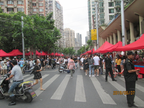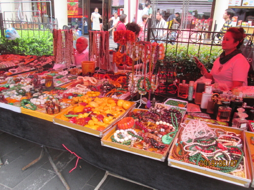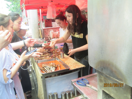 が開かれます。シシカバブ-(焼羊肉串)の匂いが食欲をそそります。現在上海市内では屋台は禁止されていますが、唯一宗教的なもの、曜日の限定等規制の中で許可されている物と思われます。ここでも支払いはスマホで払っている人がほとんどです。現金も可。食
