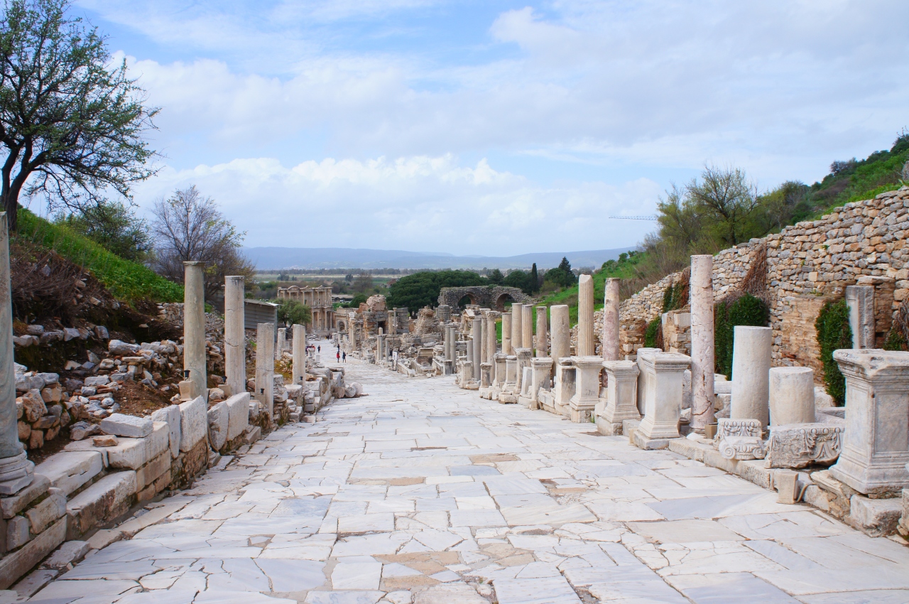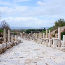 トルコにある古代ローマ帝国の都市遺跡であるエフェソス遺跡内にある通りの一つです。エフェソス遺跡にはいくつかの通りがありますが、こちらの通り沿いには、ケルスス図書館やハドリアヌス神殿等、特に遺跡が多く並んでいて見どころのある通りでした。