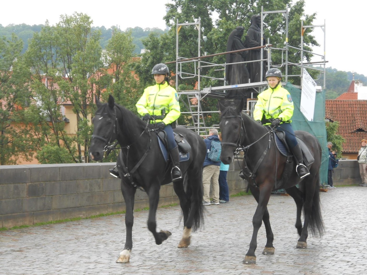 雨の中、ちょっと残念な気持ちで橋の上からの景色や雰囲気を見ていたら聞きなれない音が。振り返ると馬に乗った素敵な女性警察官が。確かに海外では珍しくないけど、やっぱりカッコいいですね。ちょっと雨でテンサゲだったので見られて嬉しかった。