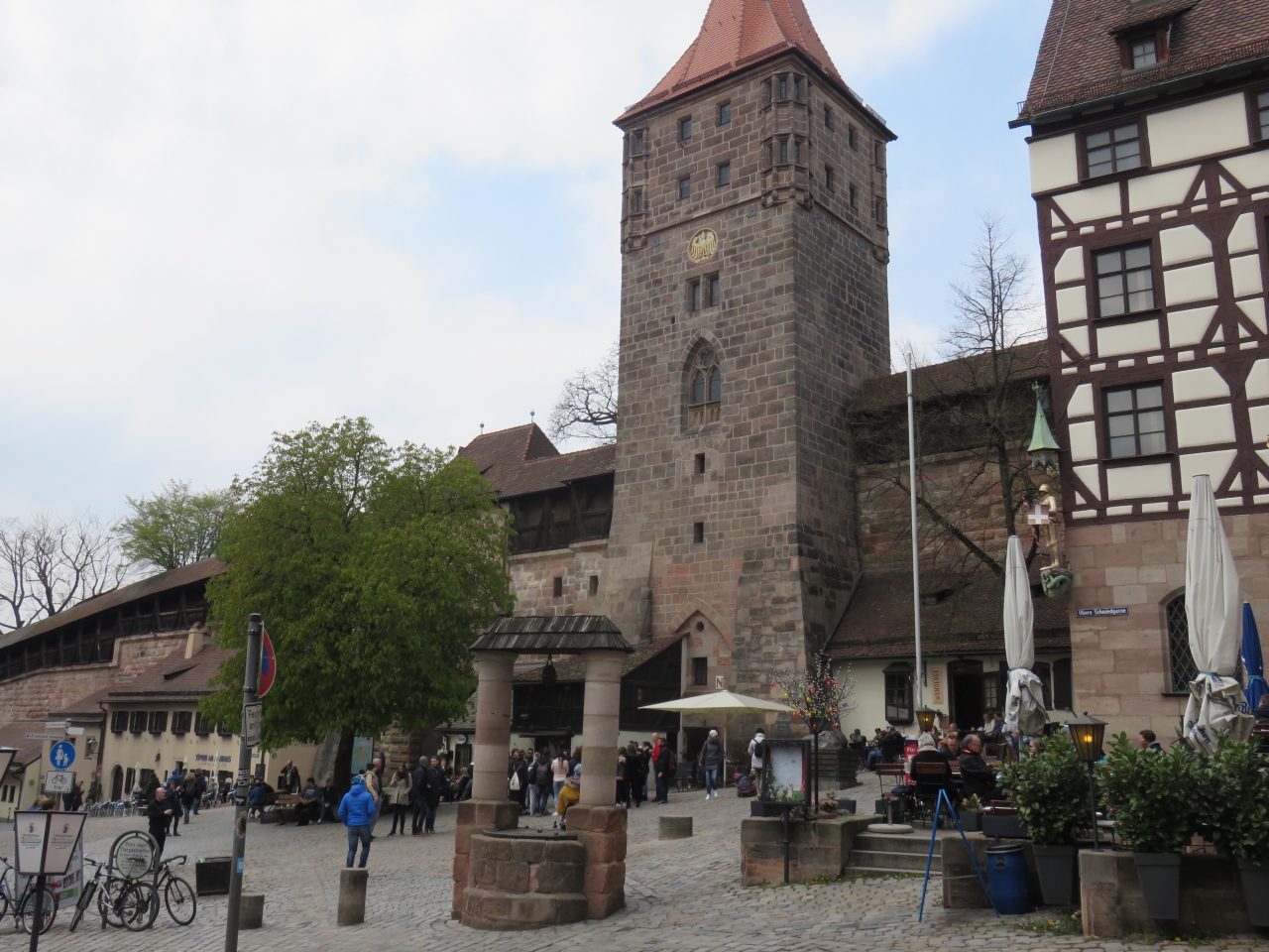 カイザーブルク城の西側の坂道を少し降りて行くと、画家であるデューラ―の家がありますが、その手前に小さな広場があり、角ばった塔がありました。この塔も城壁の一部として造られていて、見張り窓や回廊なども造られていました。
