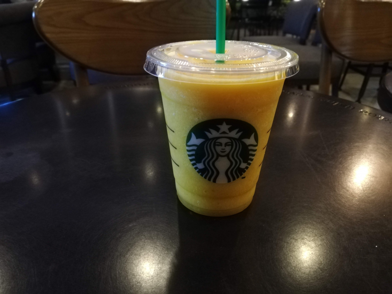 バンコクでも絶賛増殖中のスタバ。高いので普段はなるべく行かないようにしているが、たまにふらっと行きたくなる。コーヒー1杯100バーツ近くするので日本より高いが、マンゴーパッションフルーツのフラッペのトールは115バーツなので、日本よりも安い。(470円)