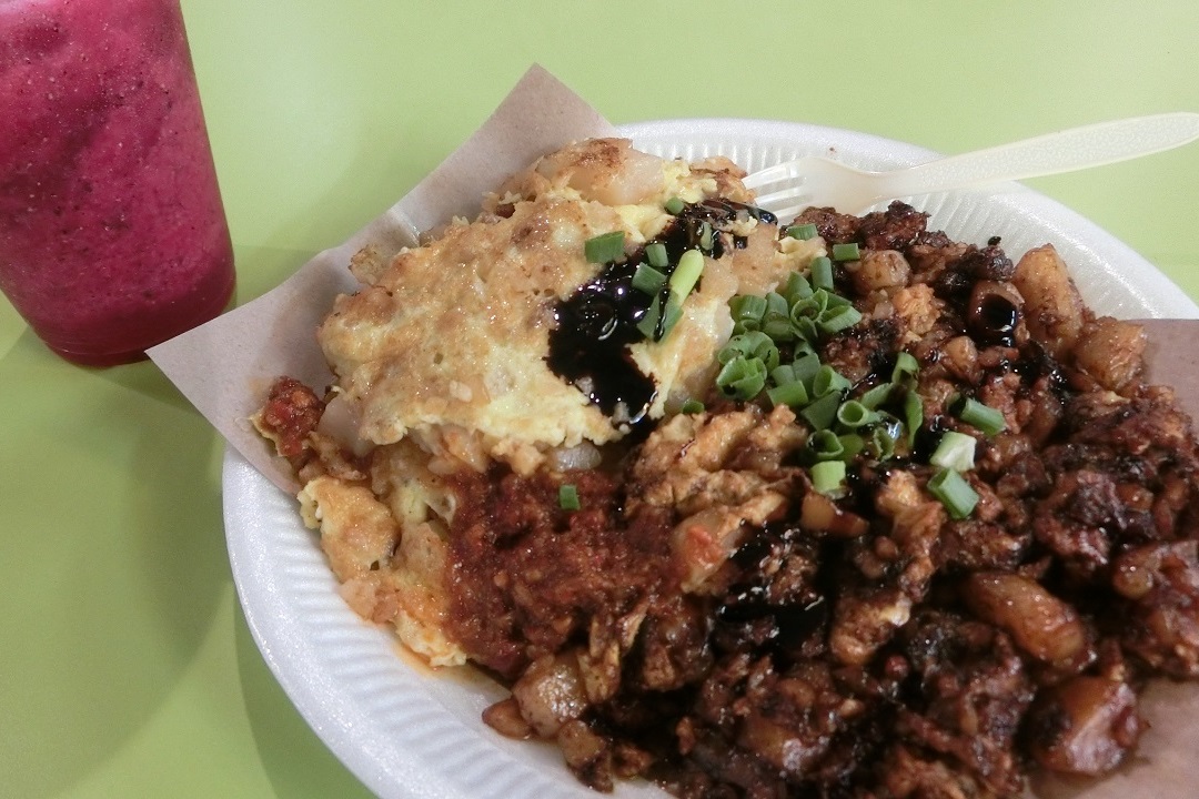 MRTブギス駅近くのアルバートセンターフードコート内にあるキャロットケーキ(細かく切った大根餅(※シンガポールでは「大根=ホワイト・キャロット」と呼ばれるそうです)と卵の炒め物)のお店です。