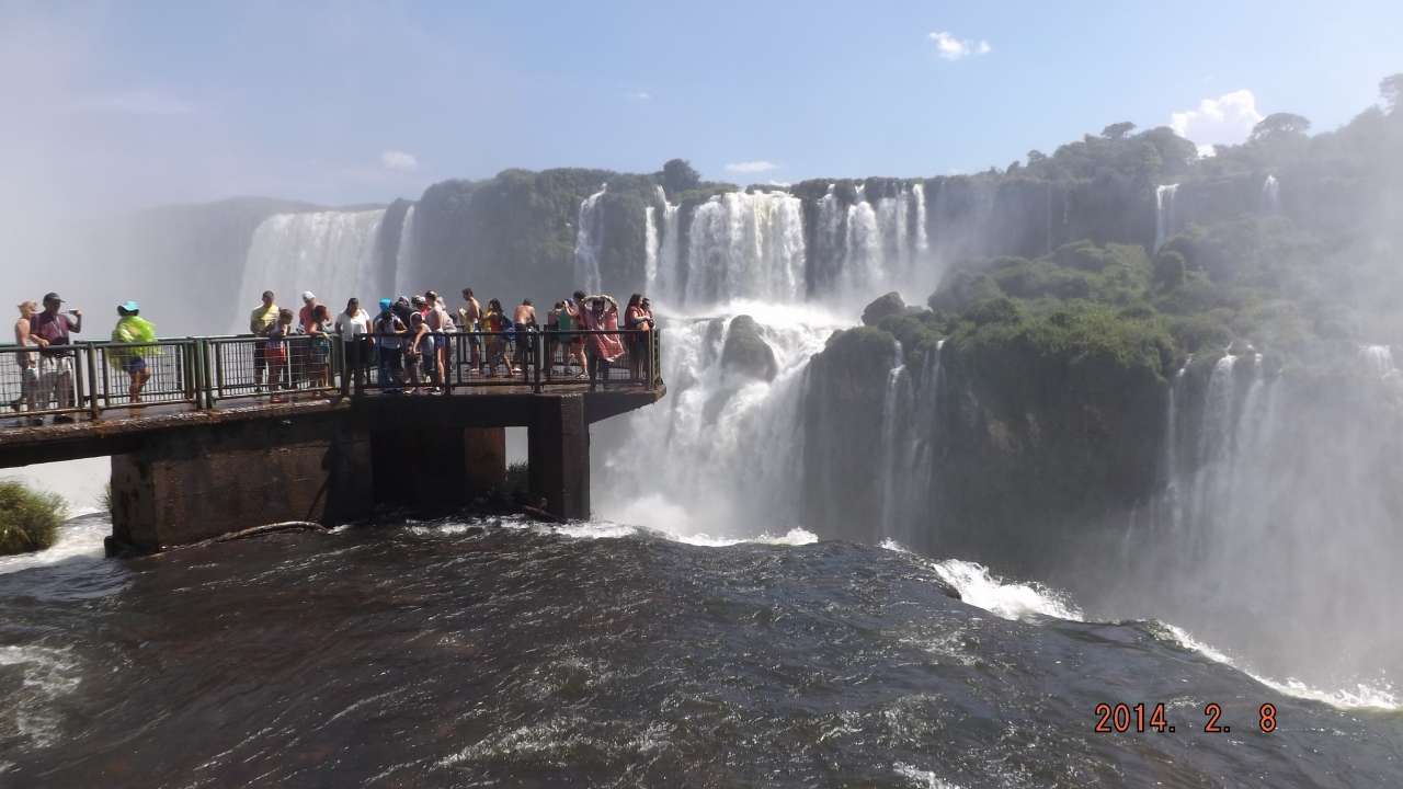 しぶきが飛んできます。この時期、「マイナスイオンが気持ちいい」をはるかに越えています。ポンチョでは不十分(横下からも来るので)、ふと隣の外人女性を見ると、半そでTシャツ、短パン、ゴムゾーリと海水浴場へ行くスタイルでした。