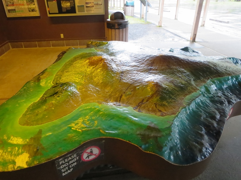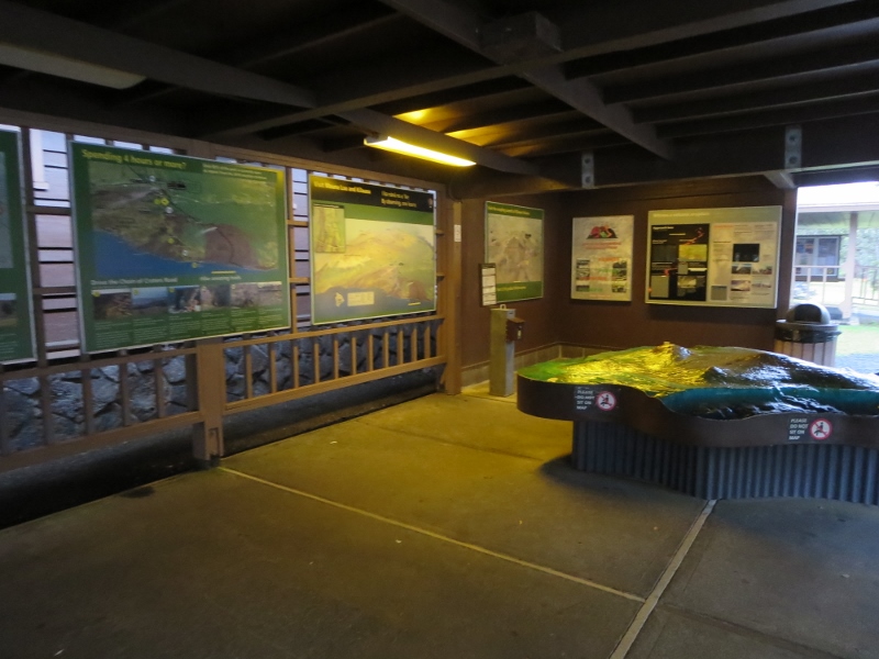 キラウェア火山に入る途中にトイレ休憩とのことで寄りました。トイレの他に展示コーナーもありました。ハワイ島の大きな模型もあったので、今どこにいるのか、どのように回ってきたのかがわかりました。奥に展示もありましたが、ゆっくり見る時間がなくて残念でした。