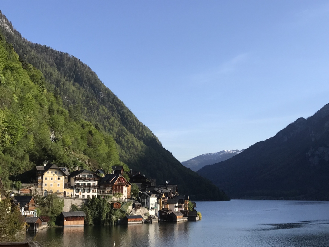 ハルシュタットの美しい景観を象徴するものの一つです。湖を囲む山の斜面に建てられている家々も景観に華を添えていました。湖沿いのゼー通りからは、美しい景色が望めます。貸しボートもあるので、天気の良い日は、ボートに乗って、湖の上からハルシュタットの町を眺めるのもお勧めです。