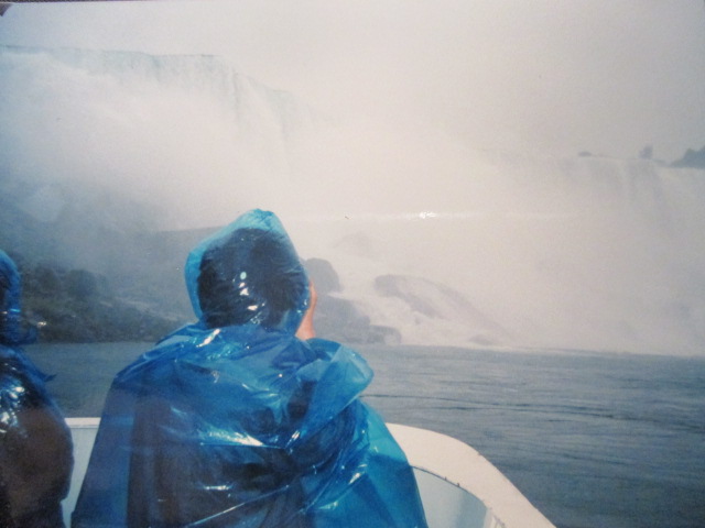 近くの街バッファローまで足を延ばして、鶏肉の手羽を素揚げにし、辛味の強いソースで味付けした名物のバッファローウィングのランチの後、アメリカ側から乗船しました。配布されるブルーのポンチョを着て、カメラもビニール袋に入れてと準備して行きましたが、余りの水しぶきに写真1枚を撮るのが精一杯でした。
