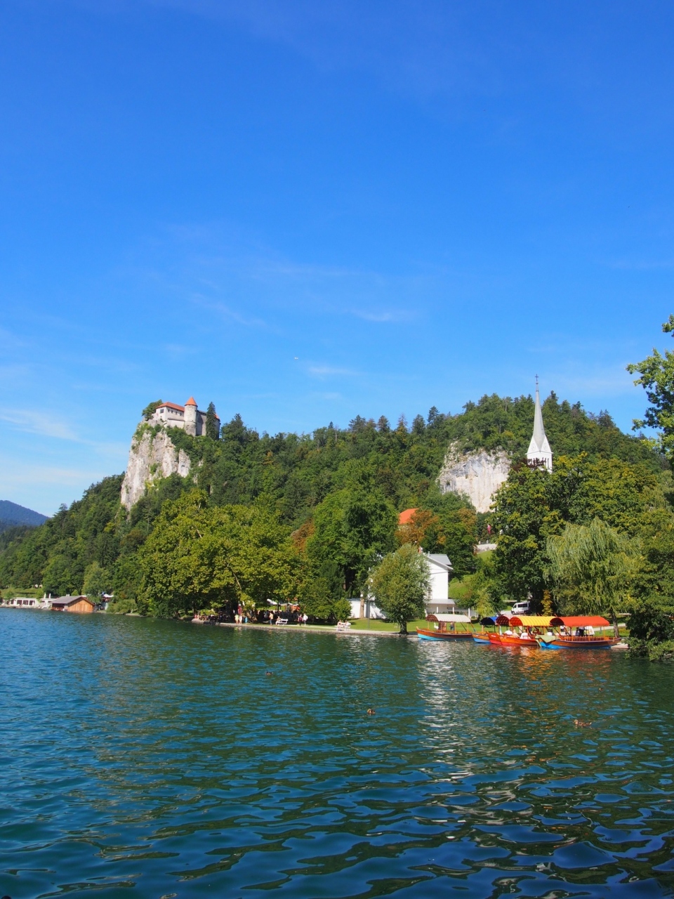 小さな湖ですが水がとても綺麗です。静かで長閑な雰囲気でした。湖にはブレッド島という小さな島が浮かび、教会があります。おとぎ話のような可愛らしい風景でした。また、湖畔の切り立った崖の上にはブレッド城が建っていてとても良い景色です。