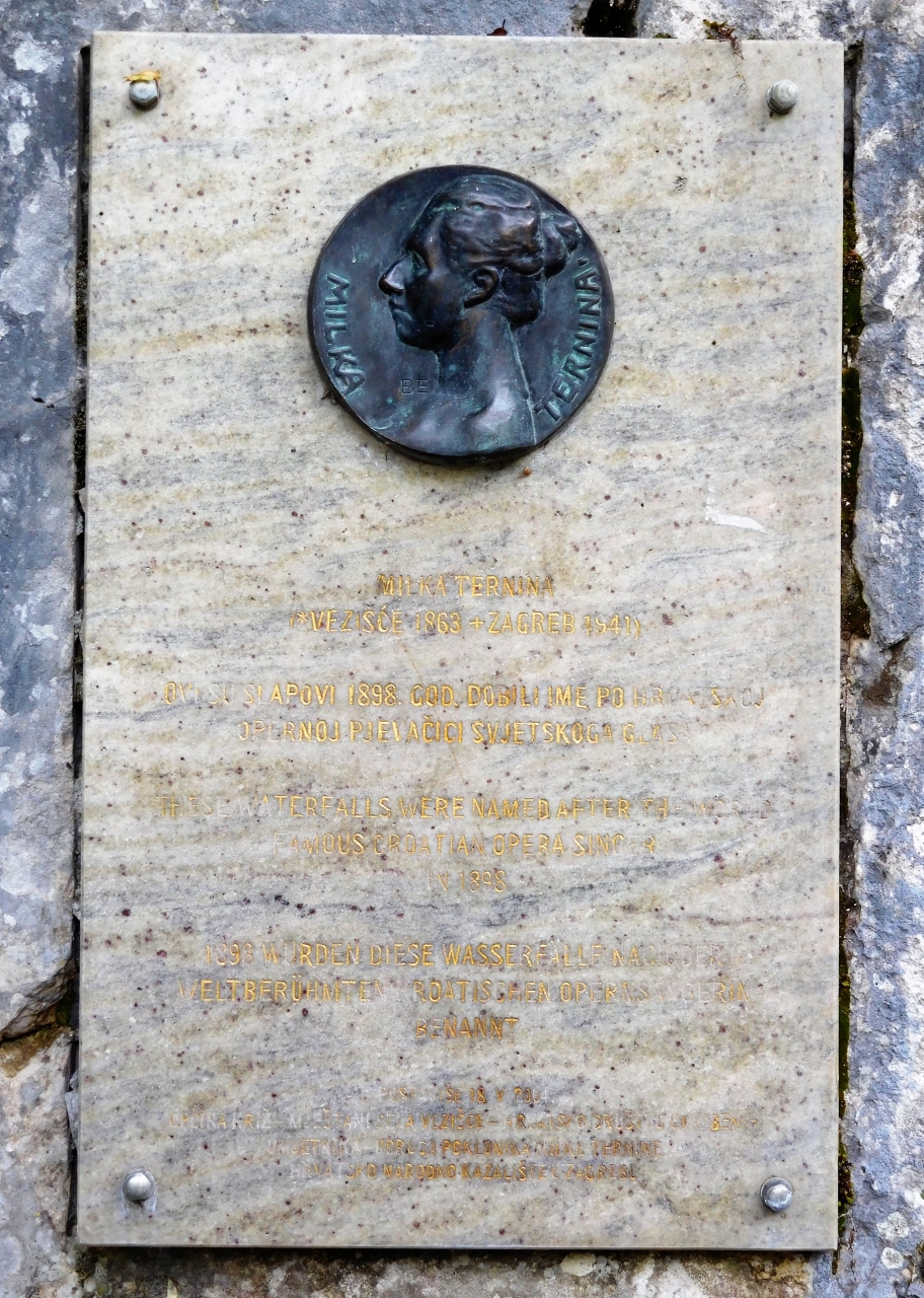 下の湖群のミラノヴァツ湖とガヴァノヴァツ湖の間にクロアチアのオペラ歌手の名前が付いた滝が流れています。