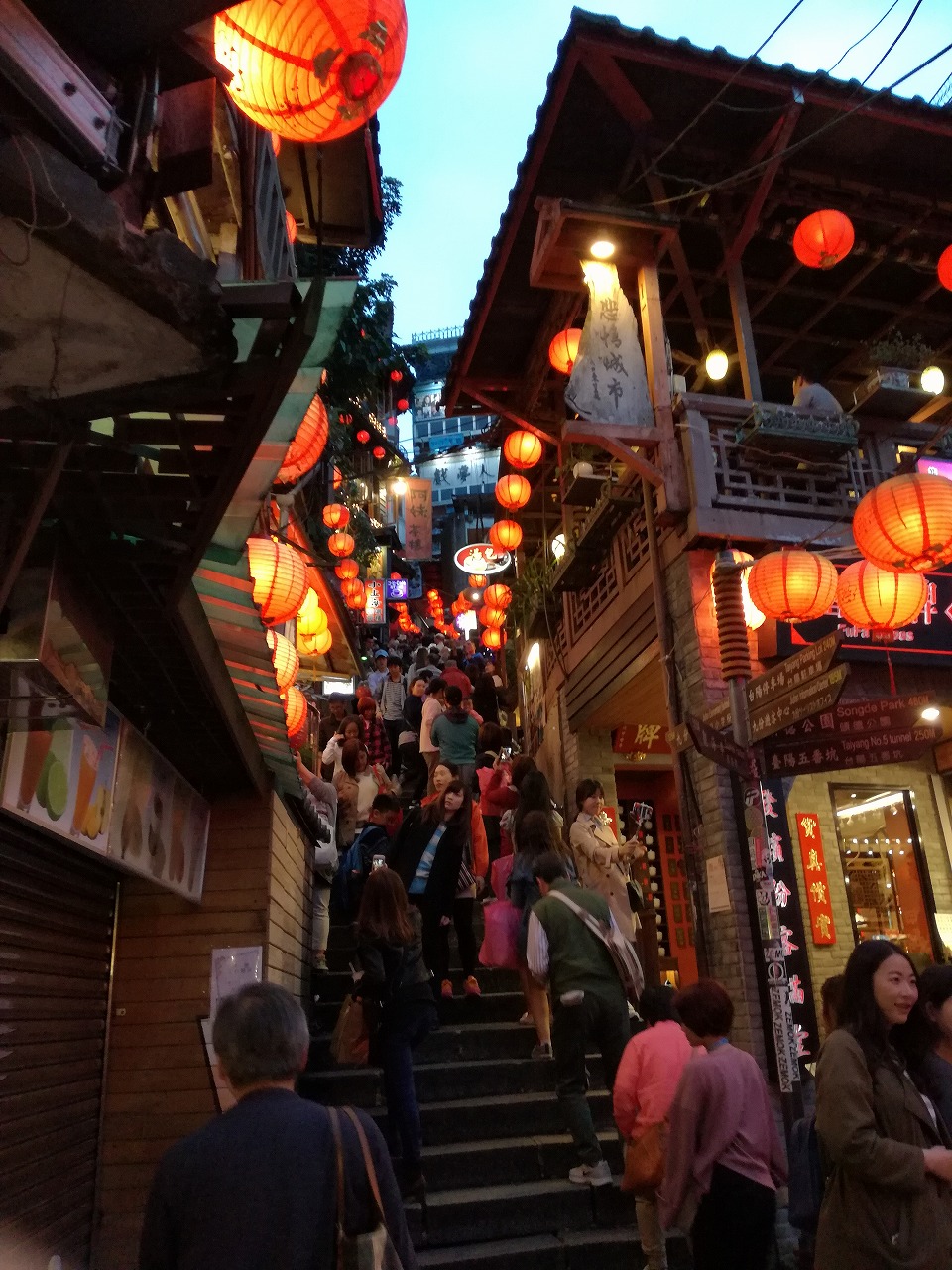 九分の街のシンボル阿妹茶酒館のある路 というより階段ですね。