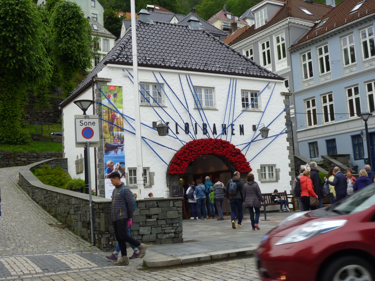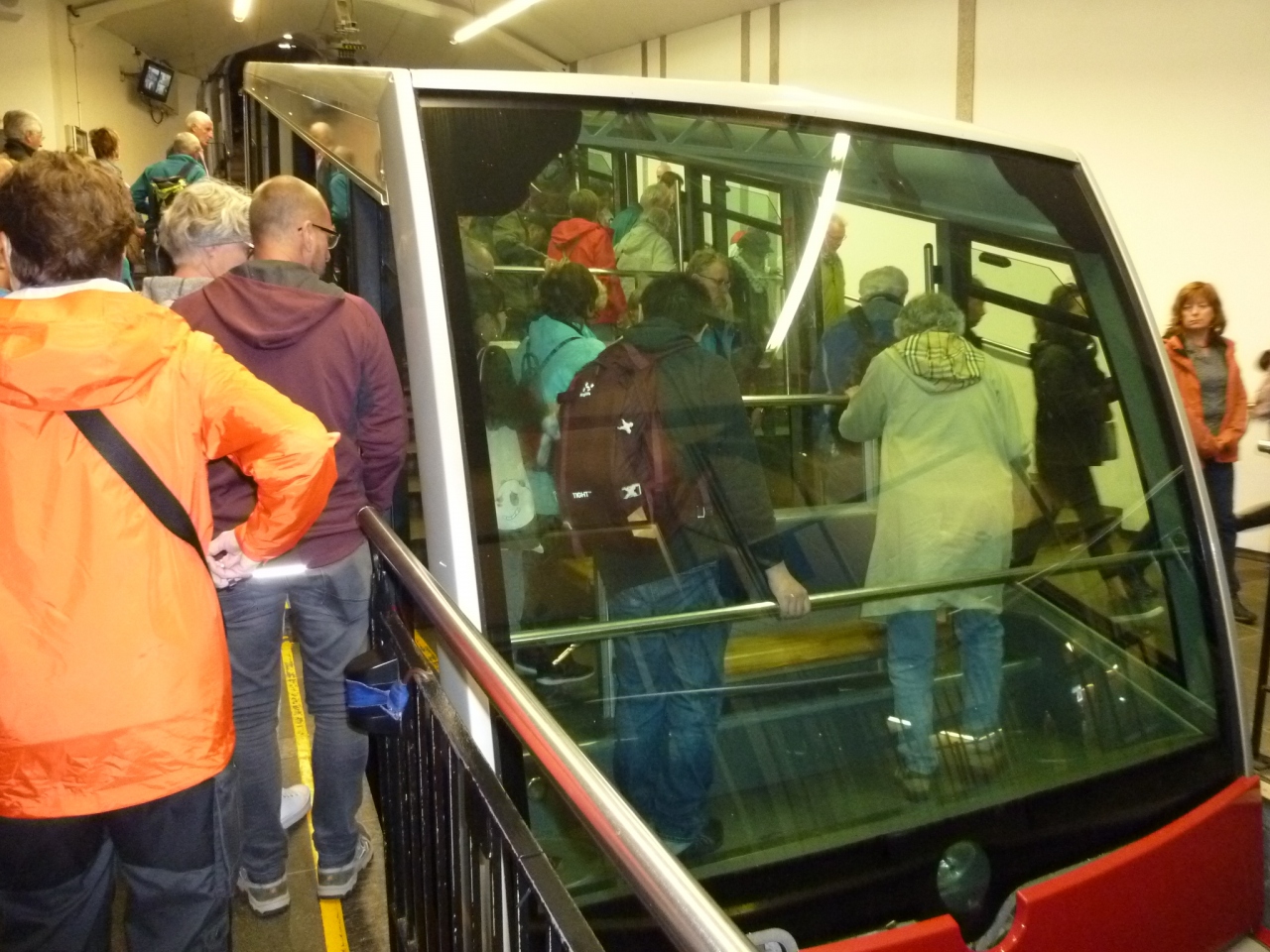 ケーブルカーはかなりの急こう配。山麓乗り場の建物が可愛らしい。往復ともに順番待ちはなく、すぐ乗車できた。