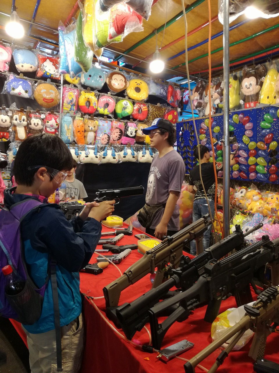 基隆夜市のなかで一番の盛り上がった場所がこの仁三路と愛四路が交差したこの交差点だと思います。射撃や、ピンボール、麻雀牌を使ったゲームといったゲームの屋台も充実しています。もし、行くお店が決まっていないのであれば、まずはここの交差点を目指したら良いと思います。