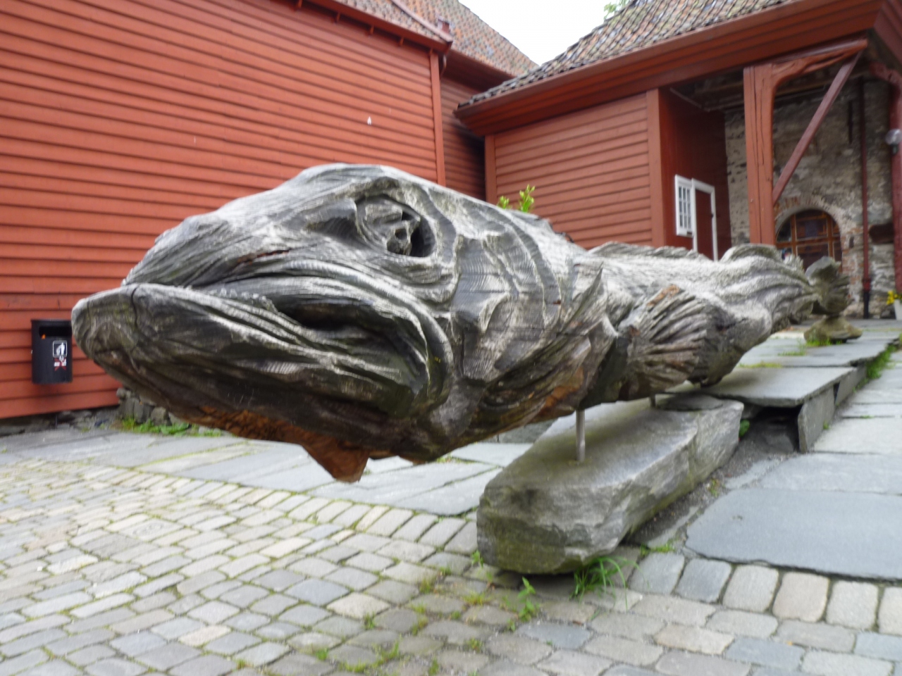 各建物は大きく、奥行きがとてつもなく長い。2階まで上がれる建物もある。各建物間の小路を潜り抜けると古い井戸、超巨大な木彫りのタラ、復元された最古のブリッケン小屋などもある。