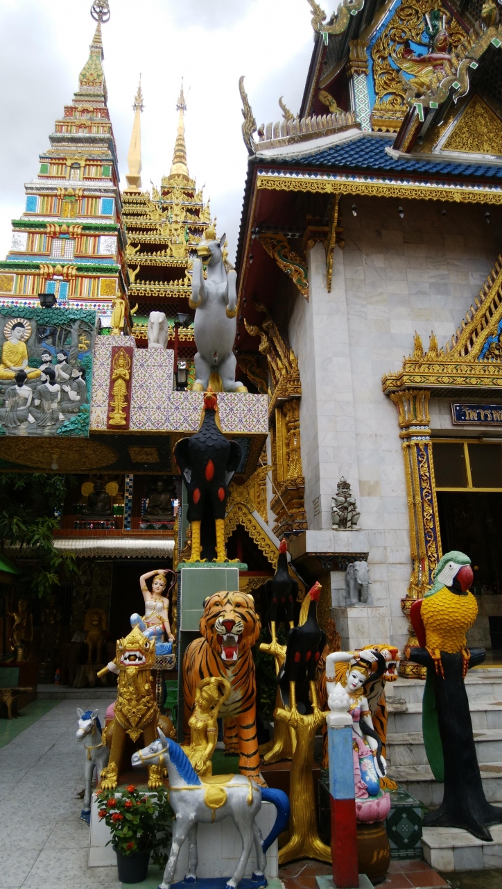 大仏をはじめいろいろな動物の像、妖艶な涅槃仏等々、どこか明るくカオスな雰囲気満載のお寺でした。帰路はBTSウッタカート駅まで徒歩15分ほどでした。