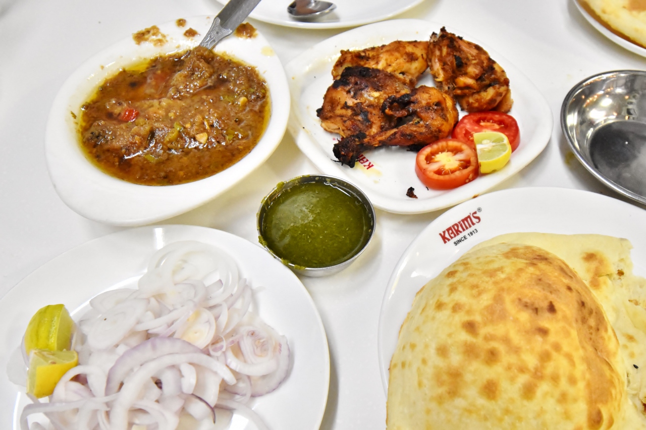 どれもムガール宮廷料理です。と、言うのも、1913年にこのお店が開店した時のコンセプトが「王族の料理を庶民に提供する事で富と名声を得る」だったので、そんなお店では宮廷料理を注文してこそ正解。ナンや生玉ねぎと一緒に頬張ると口の中で奏でられるオーケストラたるや、もはや料理界の第九。