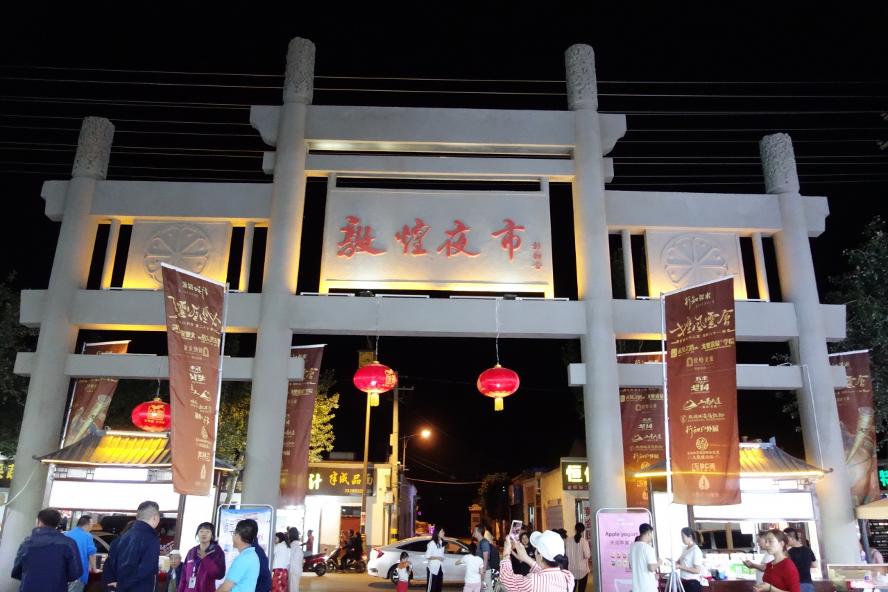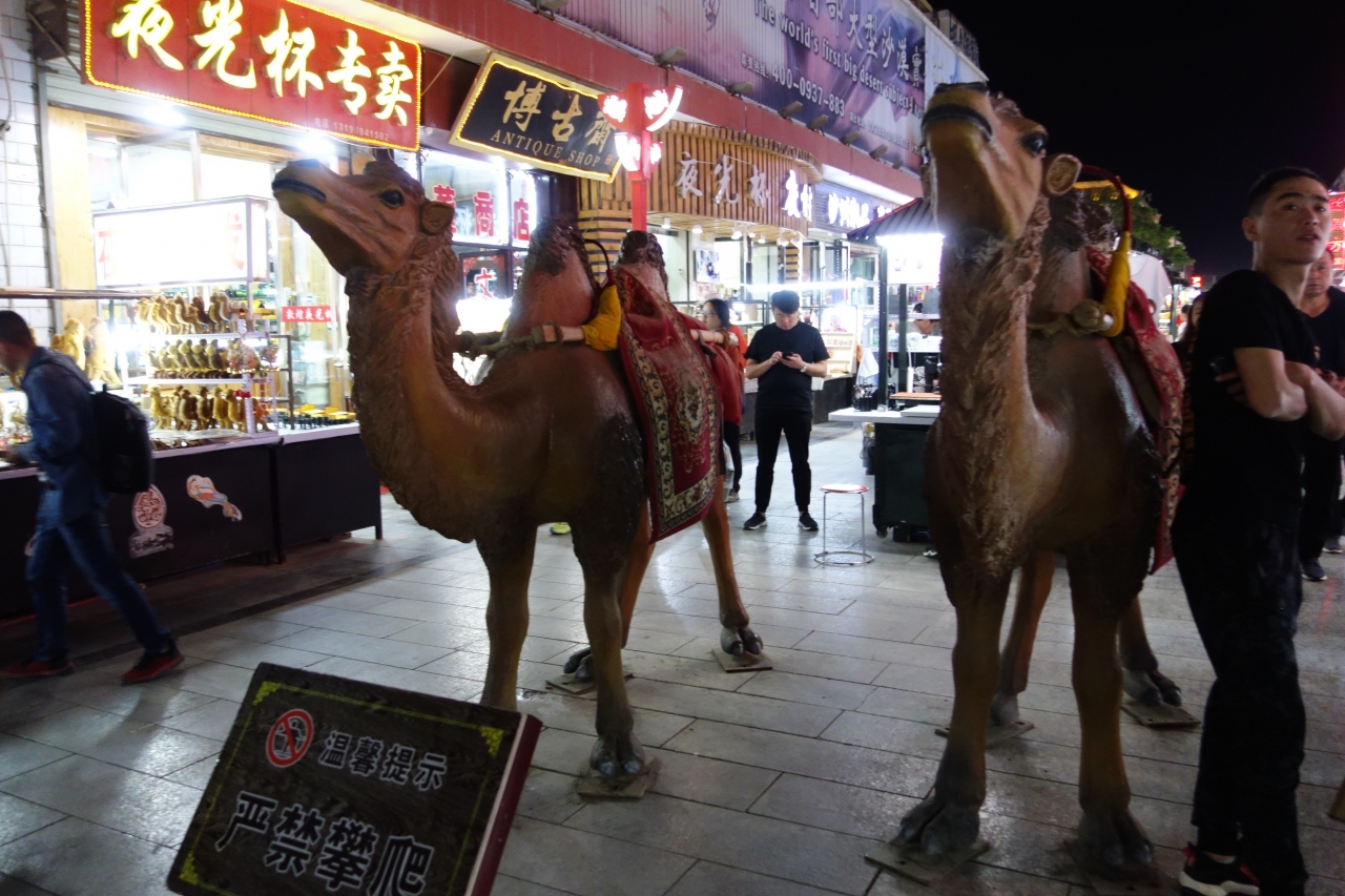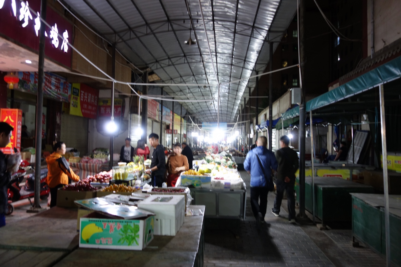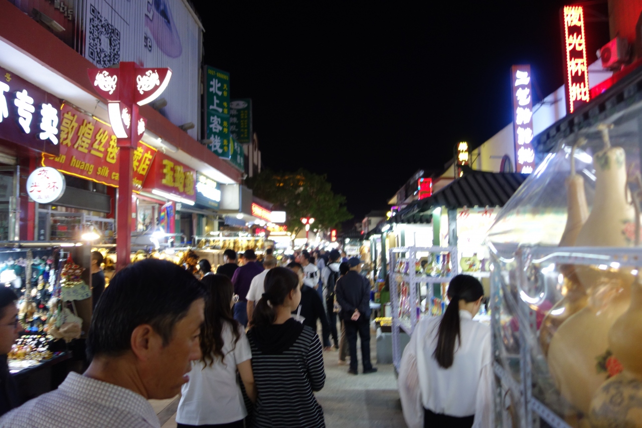 食事の後は露店が並ぶ夜市をぶらぶら歩き、お土産に夜光杯専門店で石を削って作ったぐい吞みを買ったり、脇道の八百屋さんが並んだ通りでレーズンを買ったり・・