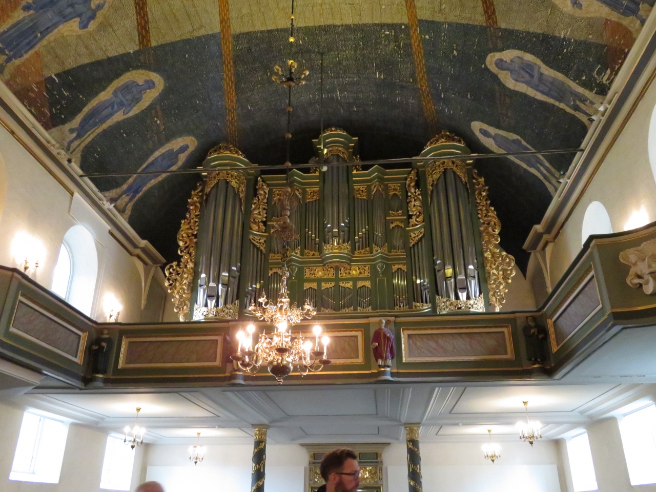 教会内のパイプオルガンは6000本ものパイプが備えられた大きな物で必見です。やわらかな色彩のフレスコ画も見ごたえありました。