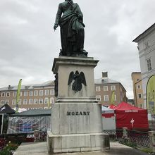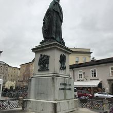 ザルツブルクと言えば、何と言ってもモーツァルトが有名です。台座も高く、全体的に大きくて立派な像でした。右手にはペンを持ち、志の高さを感じる像でした。この像の前にユネスコの世界遺産のプレートがあります。