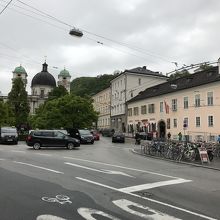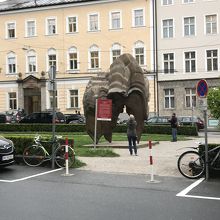 三位一体教会の前に広がる長方形の広場です。「モーツァルトの住居」もこの広場に面しています。教会のすぐ前は、公園のようになっていて、園内にはアート作品が展示されていました。なんとも独創的で目を引く作品でした。